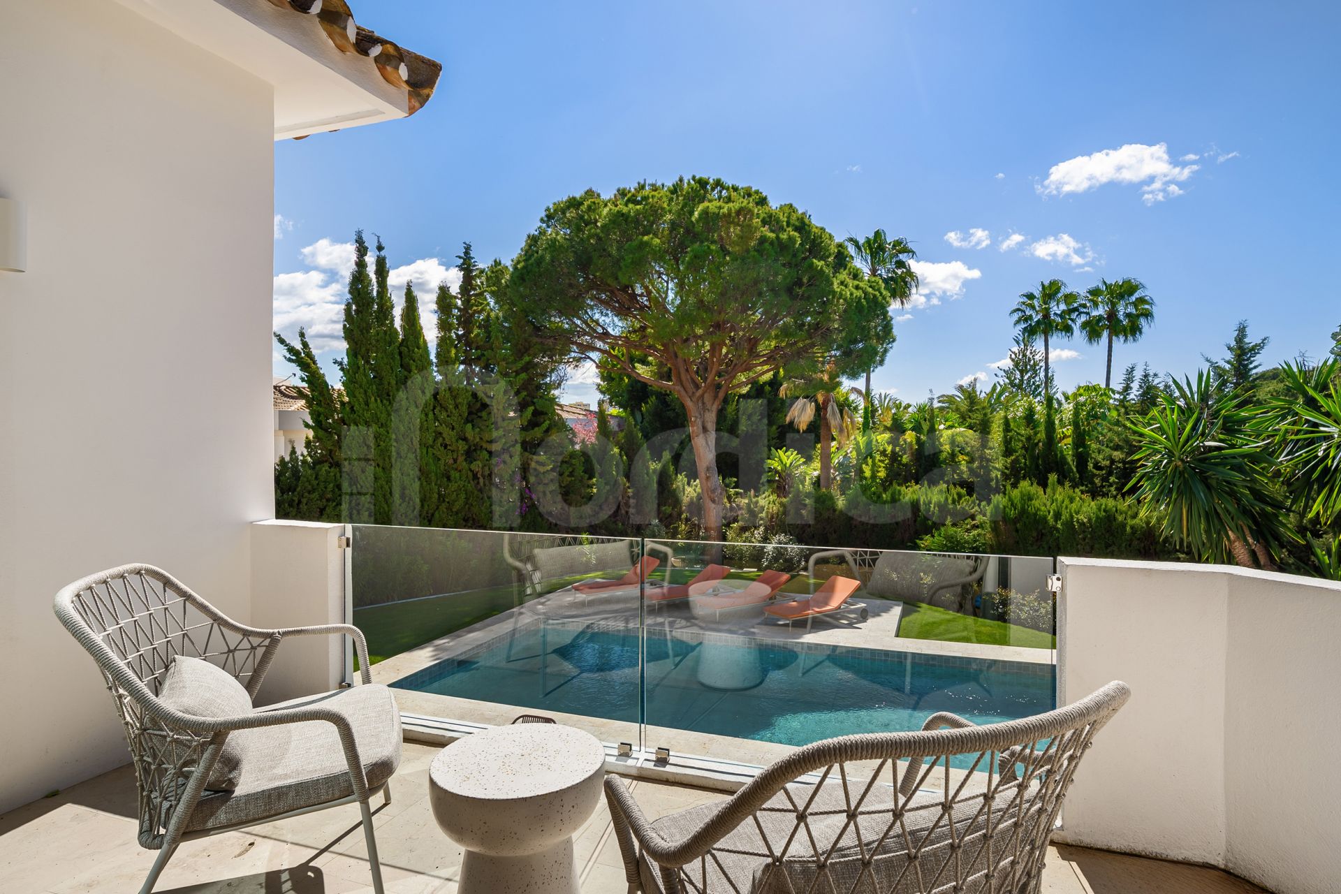 The exterior is designed for year-round enjoyment, with a landscaped garden, private swimming pool and inviting outdoor dining spaces perfect for relaxation and entertaining. From the terrace you can admire views of La Concha Mountain or unwind beside the pool under the Andalusian sun.