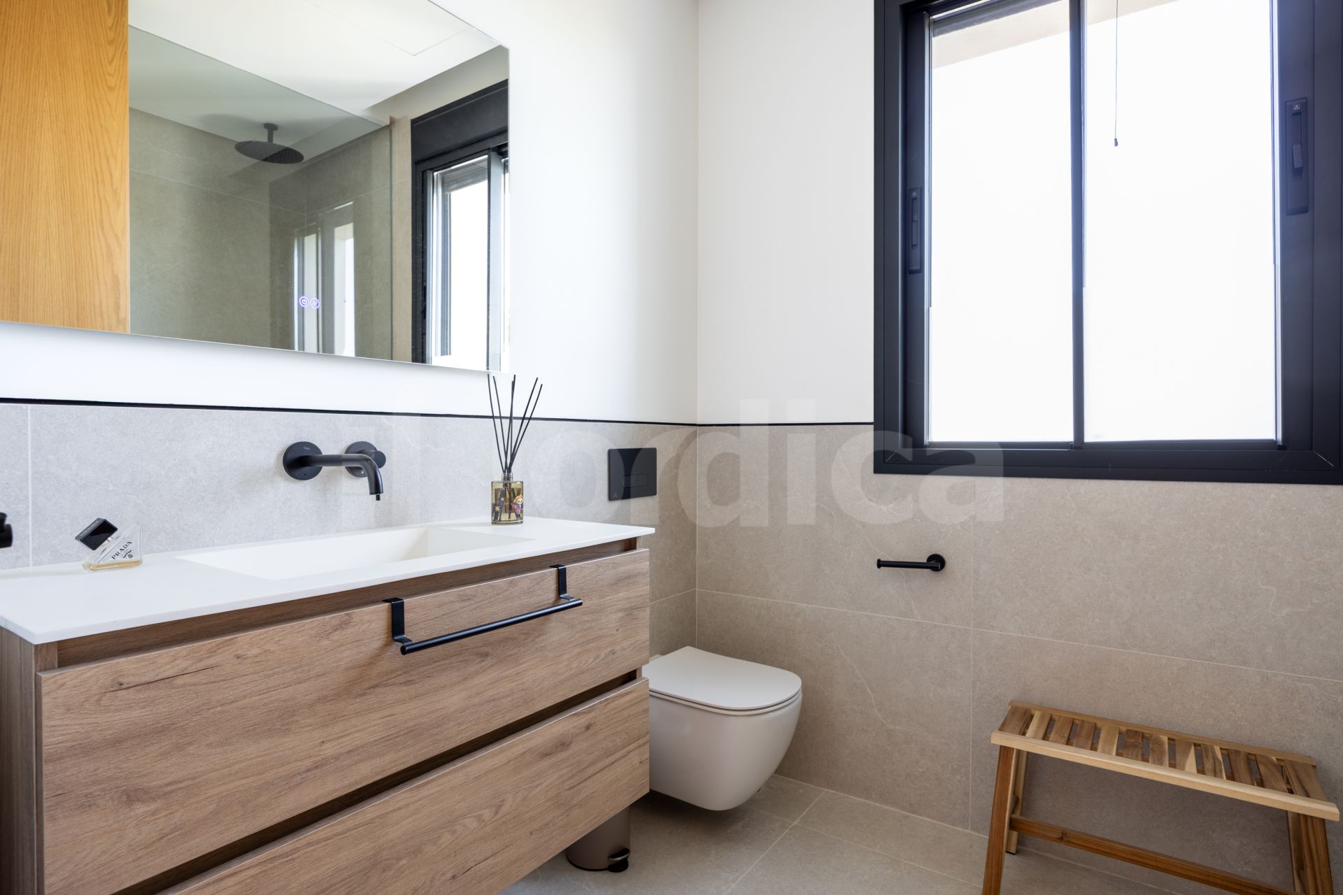 Set in an elevated position, the home enjoys uninterrupted sea views from every level, while its orientation ensures abundant natural light throughout the day. The property features four spacious en-suite bedrooms and seven designer bathrooms, offering both privacy and refined luxury. Comfort is enhanced by water-based underfloor heating, an advanced Airzone climate control system, and full smart home integration.