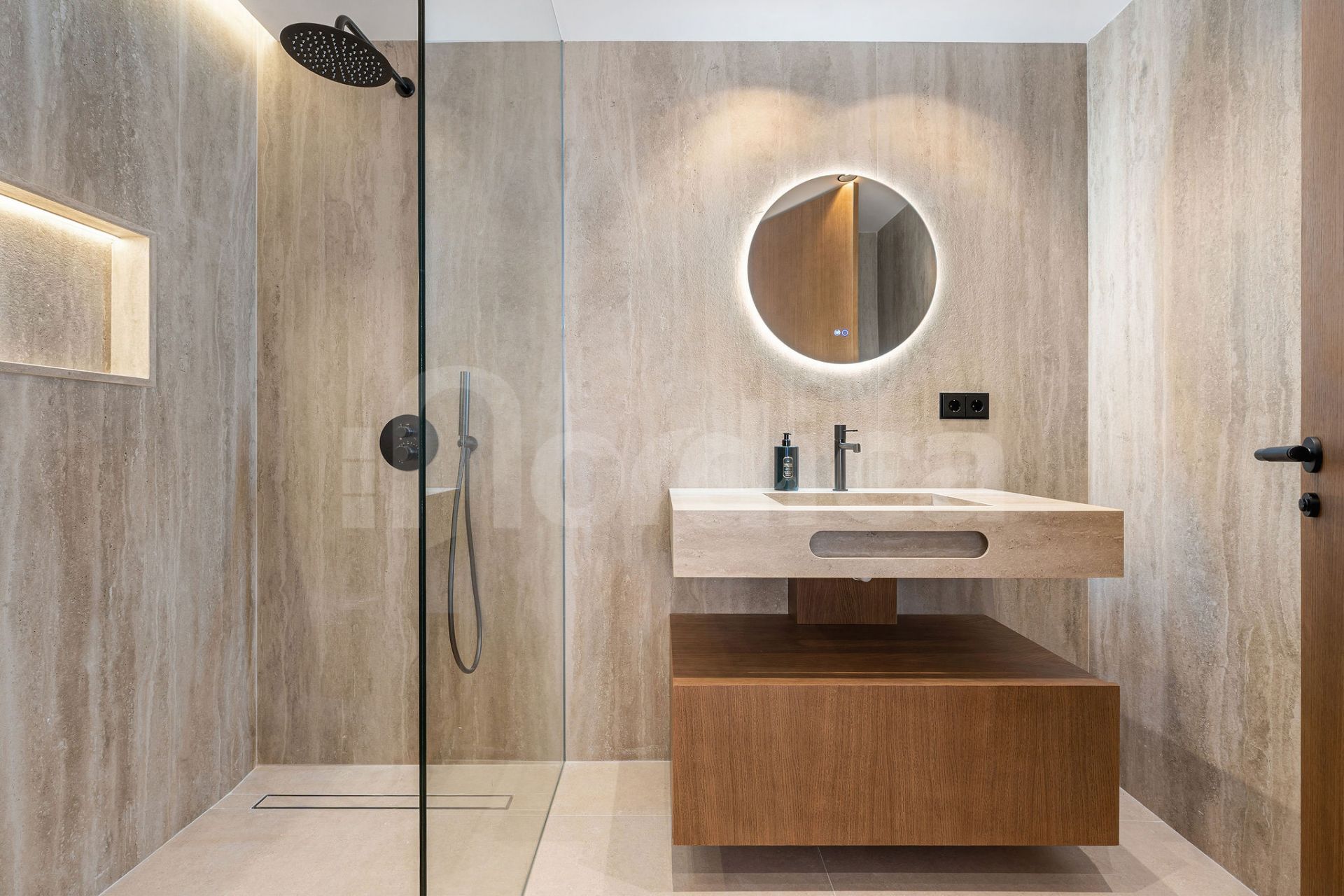 The property features three spacious bedrooms, each with its own en-suite bathroom, offering comfort and privacy for residents and guests alike. Two of the bedrooms enjoy direct access to the terrace, allowing you to wake up to stunning views every day. In addition, there is a stylish guest toilet.