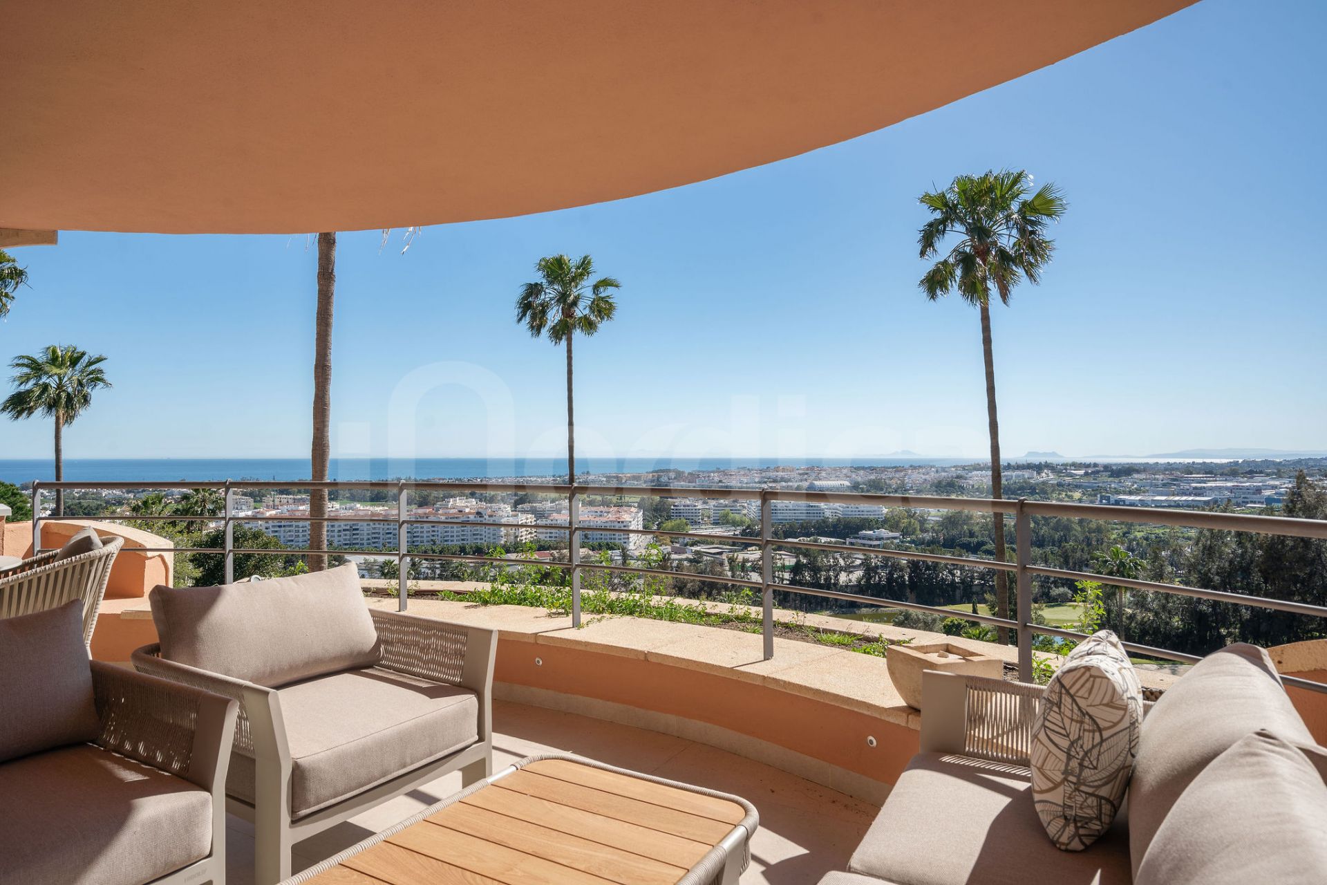 Located in the highly sought-after Magna Marbella community in Nueva Andalucía, this stunning fully refurbished apartment offers an exceptional blend of modern elegance, comfort, and breathtaking surroundings. Set within one of the most prestigious gated communities in the Marbella area, Magna Marbella is renowned for its elevated position, impeccable maintenance, and exclusive lifestyle.