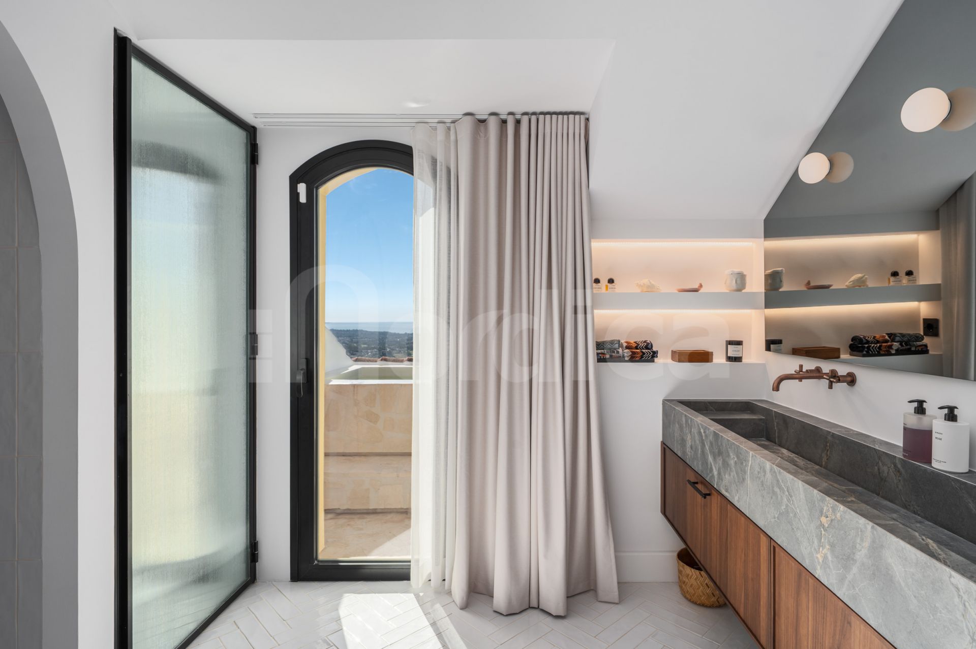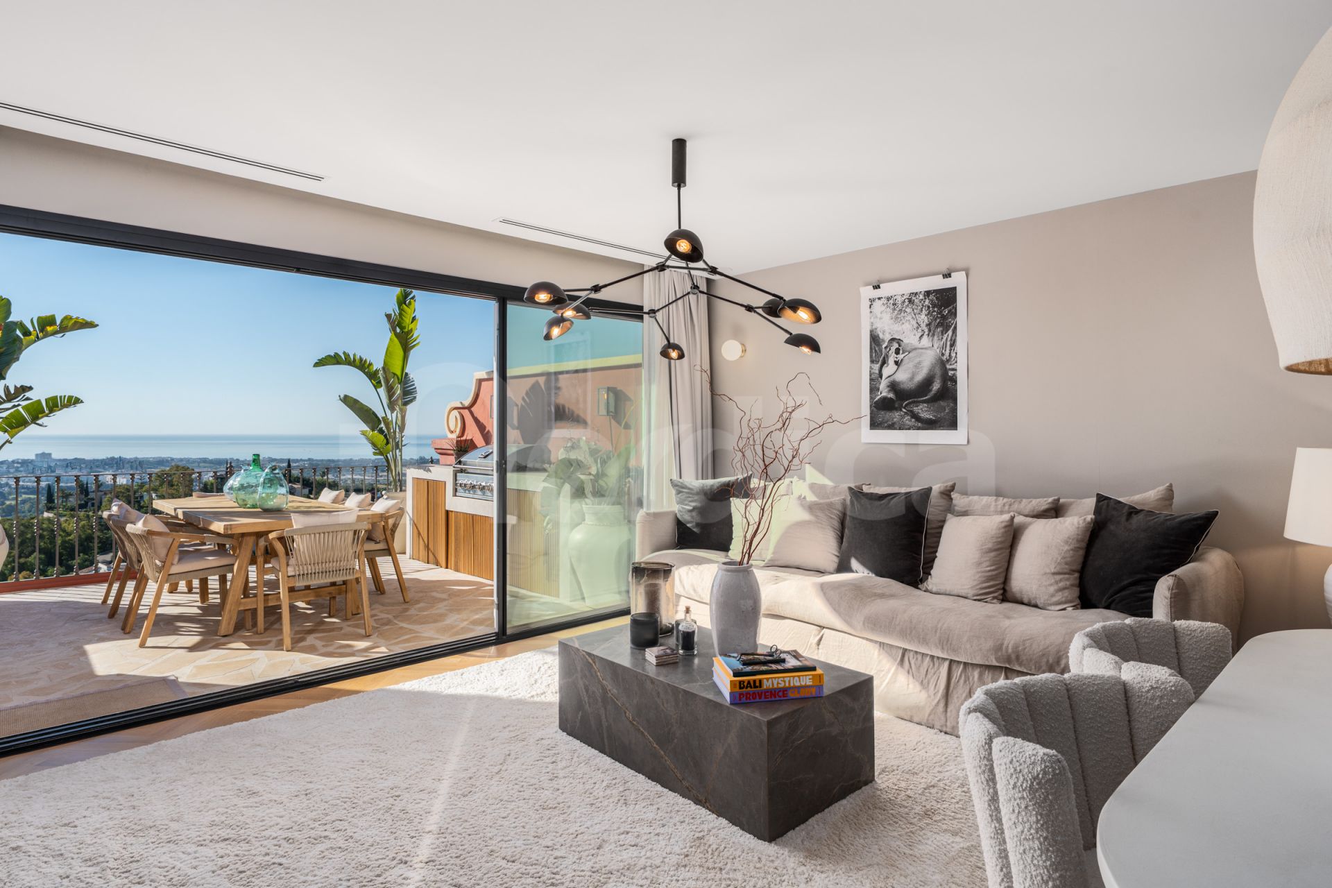 Outdoor living is just as thoughtfully designed and it has a outdoor kitchen, and a private mini plunge pool with heating, perfect for year-round enjoyment. This space provides a seamless extension of the interior and is ideal for entertaining or unwinding while enjoying unobstructed views of the coastline and mountains.