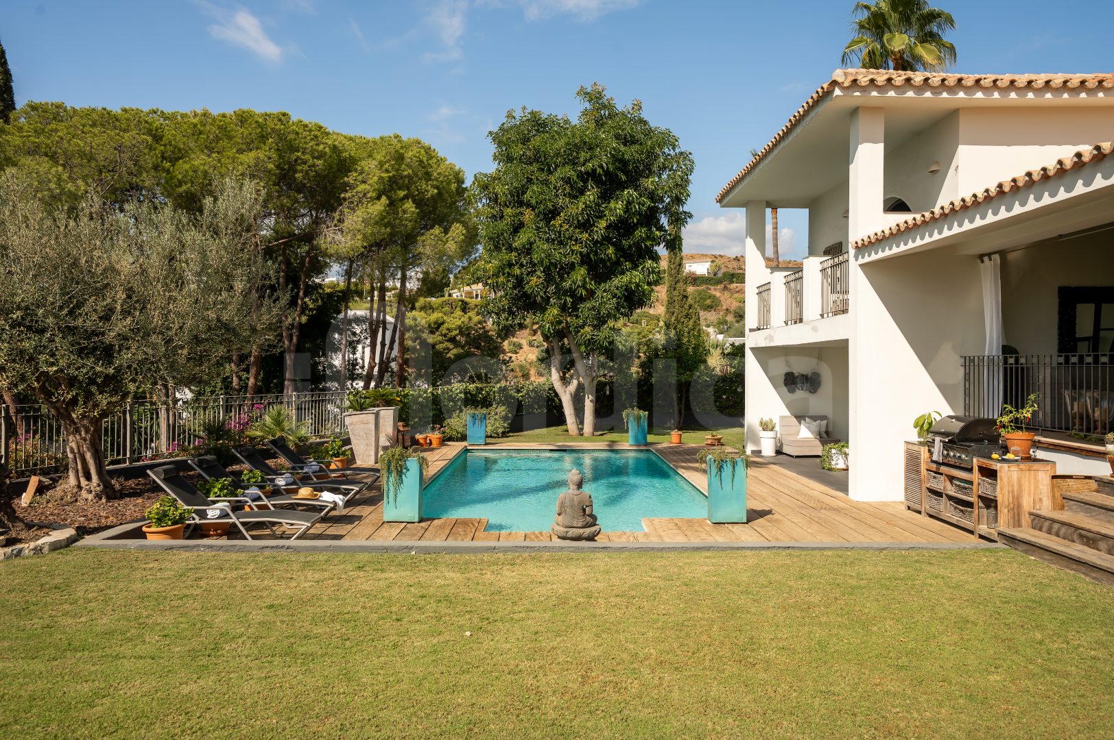 Set on a generous 1,600 m² plot, the villa boasts a large swimming pool, beautifully landscaped gardens with mature fruit trees, covered relaxation areas and several terraces that provide both sunny and shaded spaces throughout the day. Built with exceptional care and quality materials, this unique home stands out for its attention to detail, timeless style and inviting atmosphere, making it an outstanding residence in one of the most desirable areas of Benahavís.
