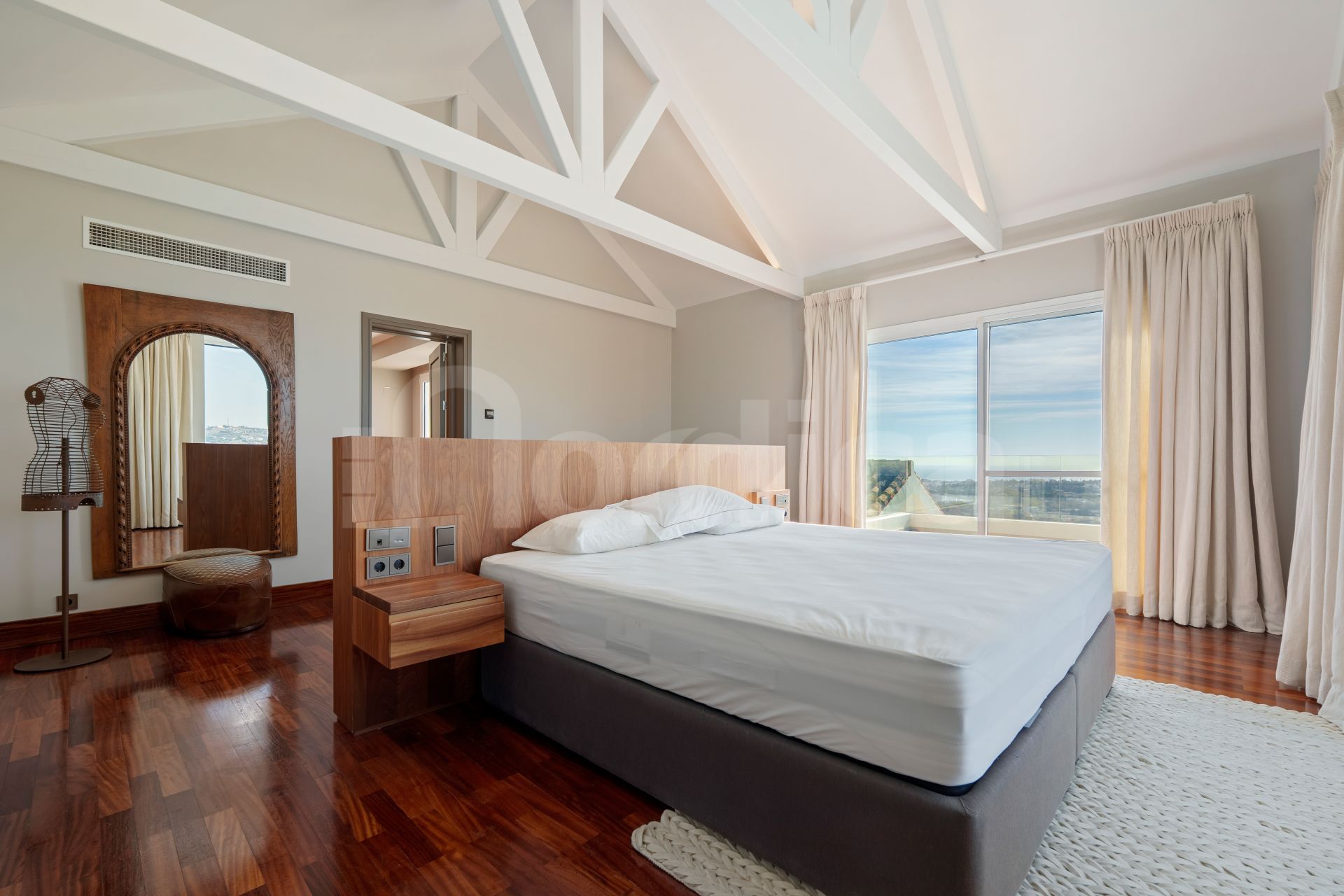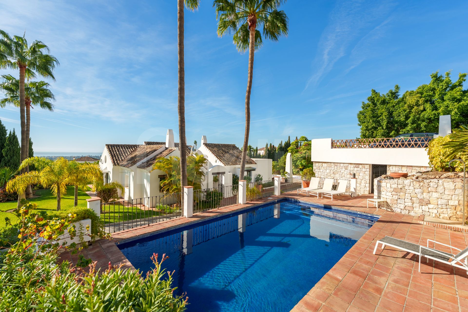 Set in the elevated enclave of Puerto del Almendro in Benahavís, this south-facing villa offers an exceptional combination of scale, privacy, and panoramic views across the Mediterranean coastline. The property comprises nine bedrooms and nine en-suite bathrooms, thoughtfully distributed between a main residence and a separate guest house, all positioned on an expansive 7,881 m² plot. With approximately 1,177 m² of built space, 140 m² of terraces, and two outdoor swimming pools, the home is designed to embrace both comfort and impressive surroundings.