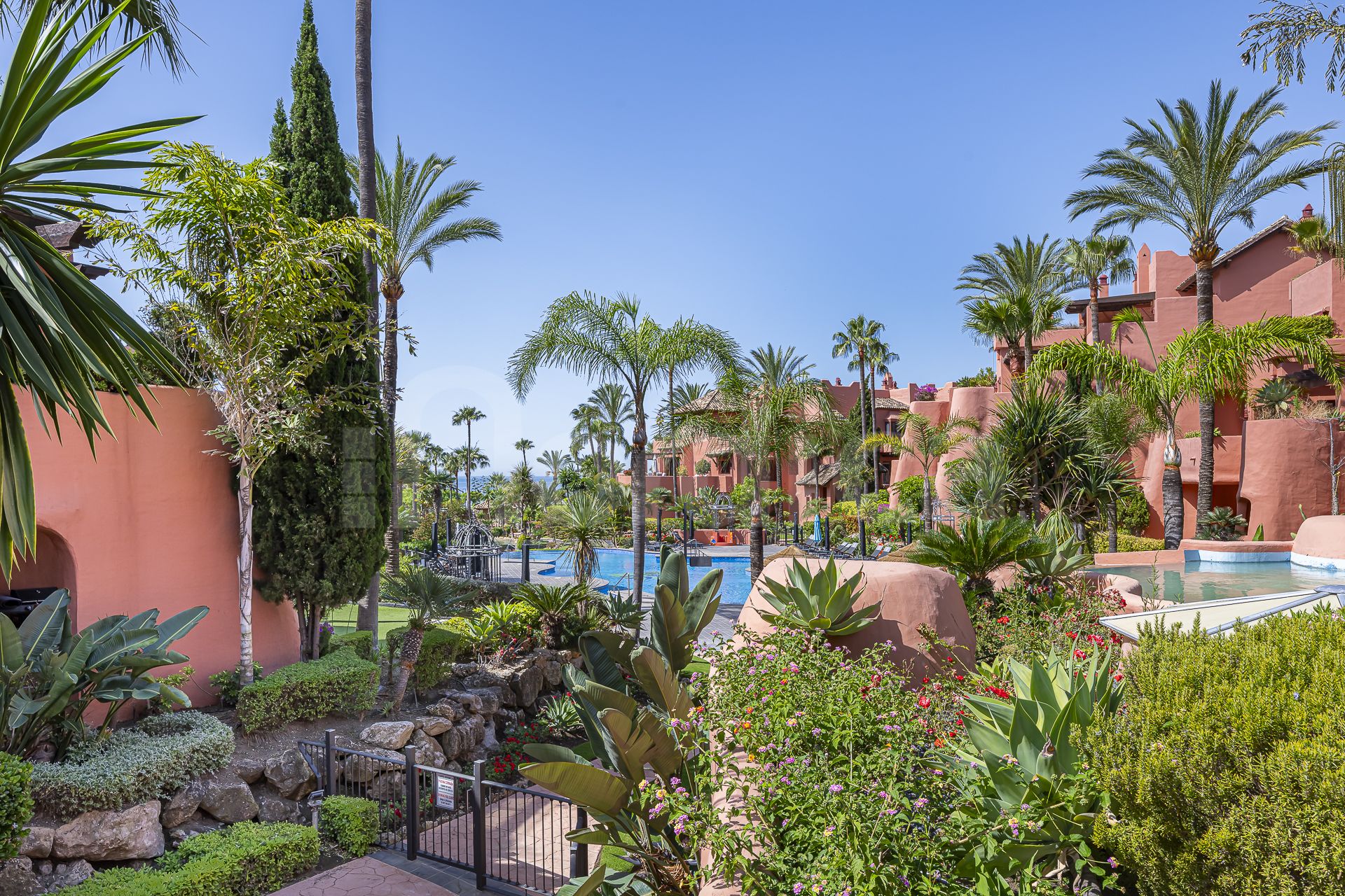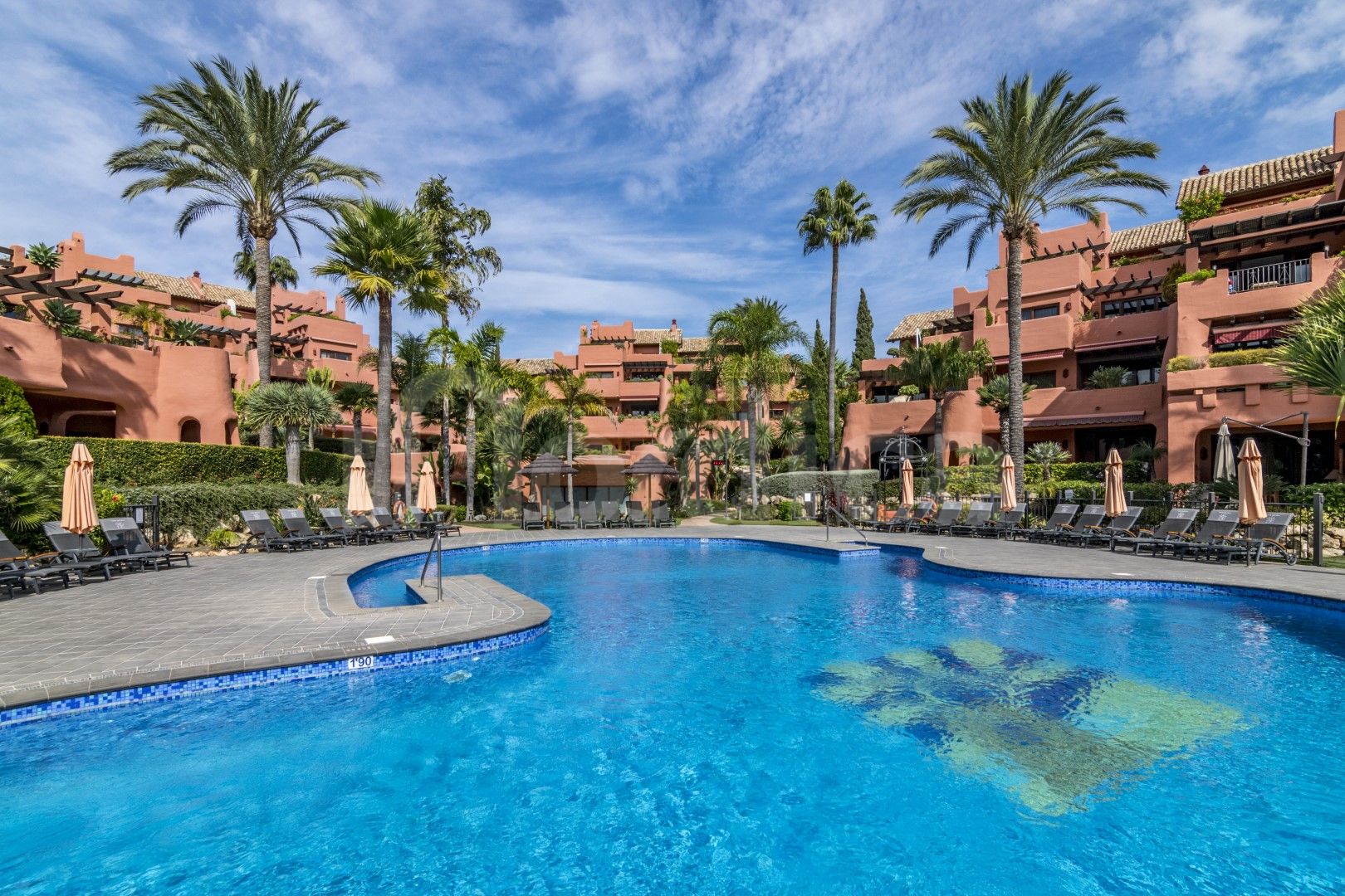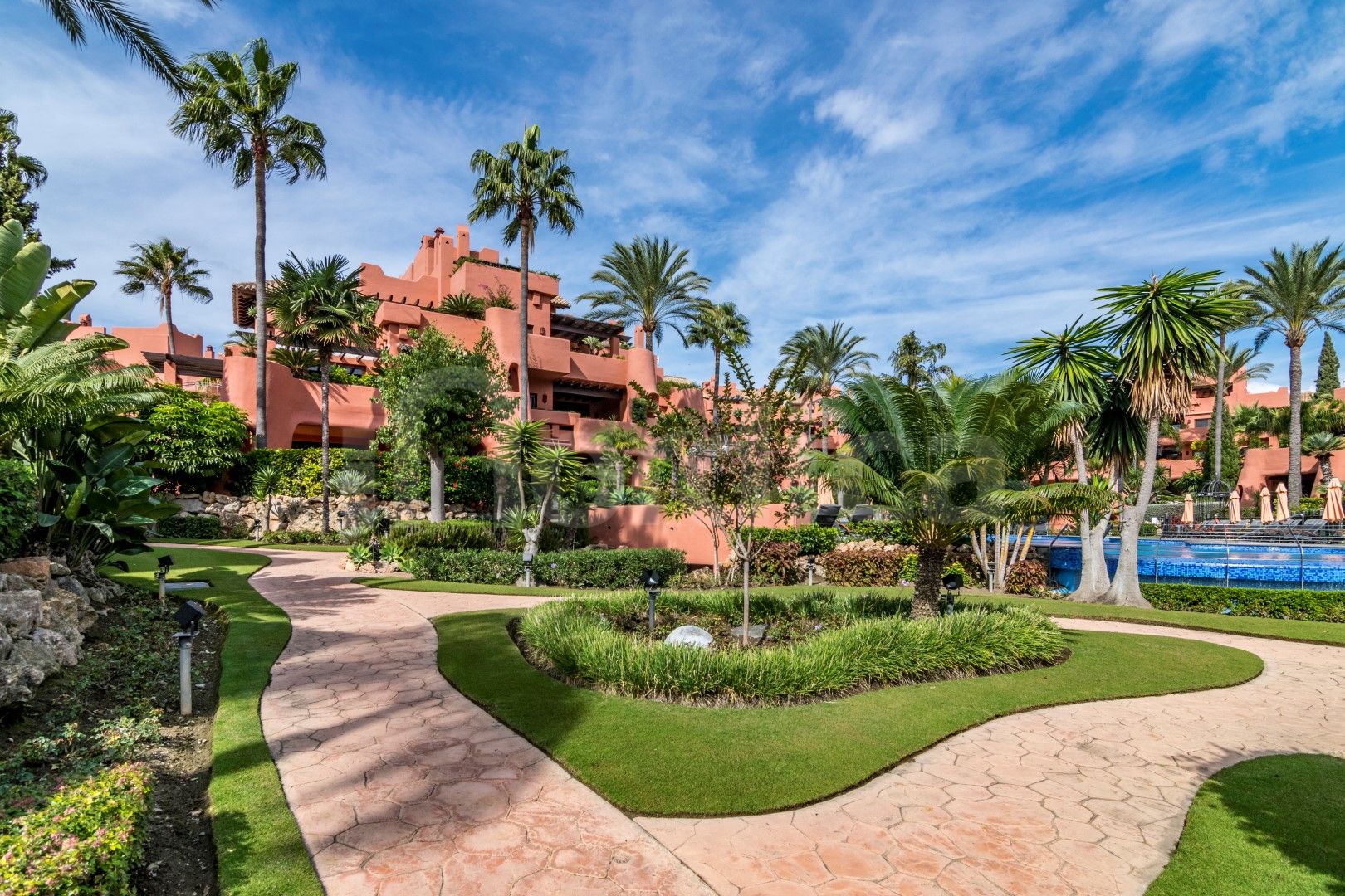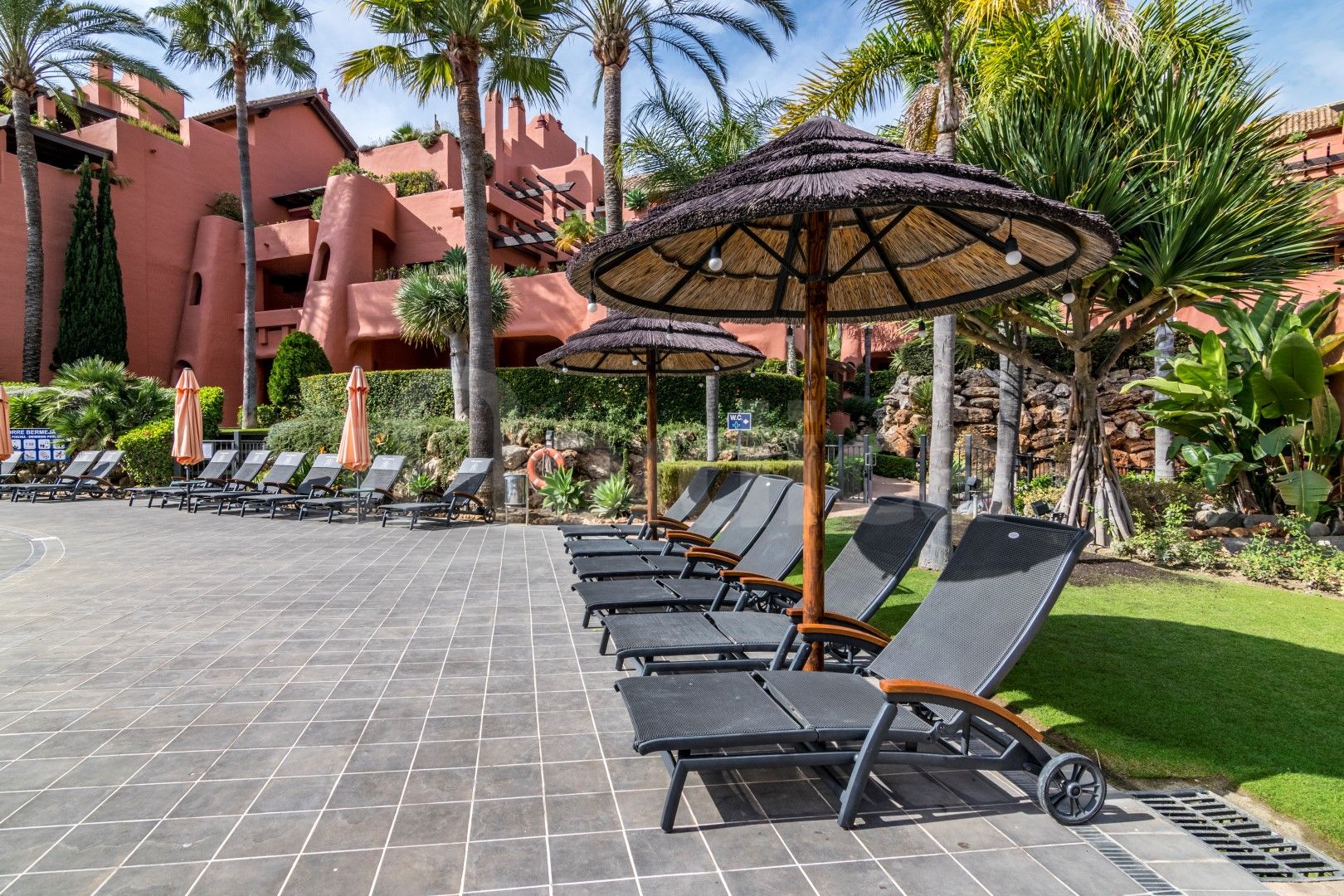 This south facing 3 bedroom and 3-bathroom ground floor apartment has been fully renovated to the highest standards and offers delightful views of the lush landscaped gardens. The apartment is located in the high- end urbanization of Torre Bermeja, a gated complex with 24-hour security which is well known for its mature landscaped gardens and amazing “5 star” facilities such as 2 outdoor pools, 2 gyms, an indoor pool and 2 saunas. It has direct access to the beach and promenade and several amazing restaurants are within walking distance.