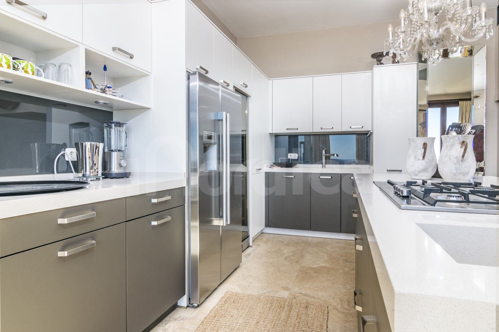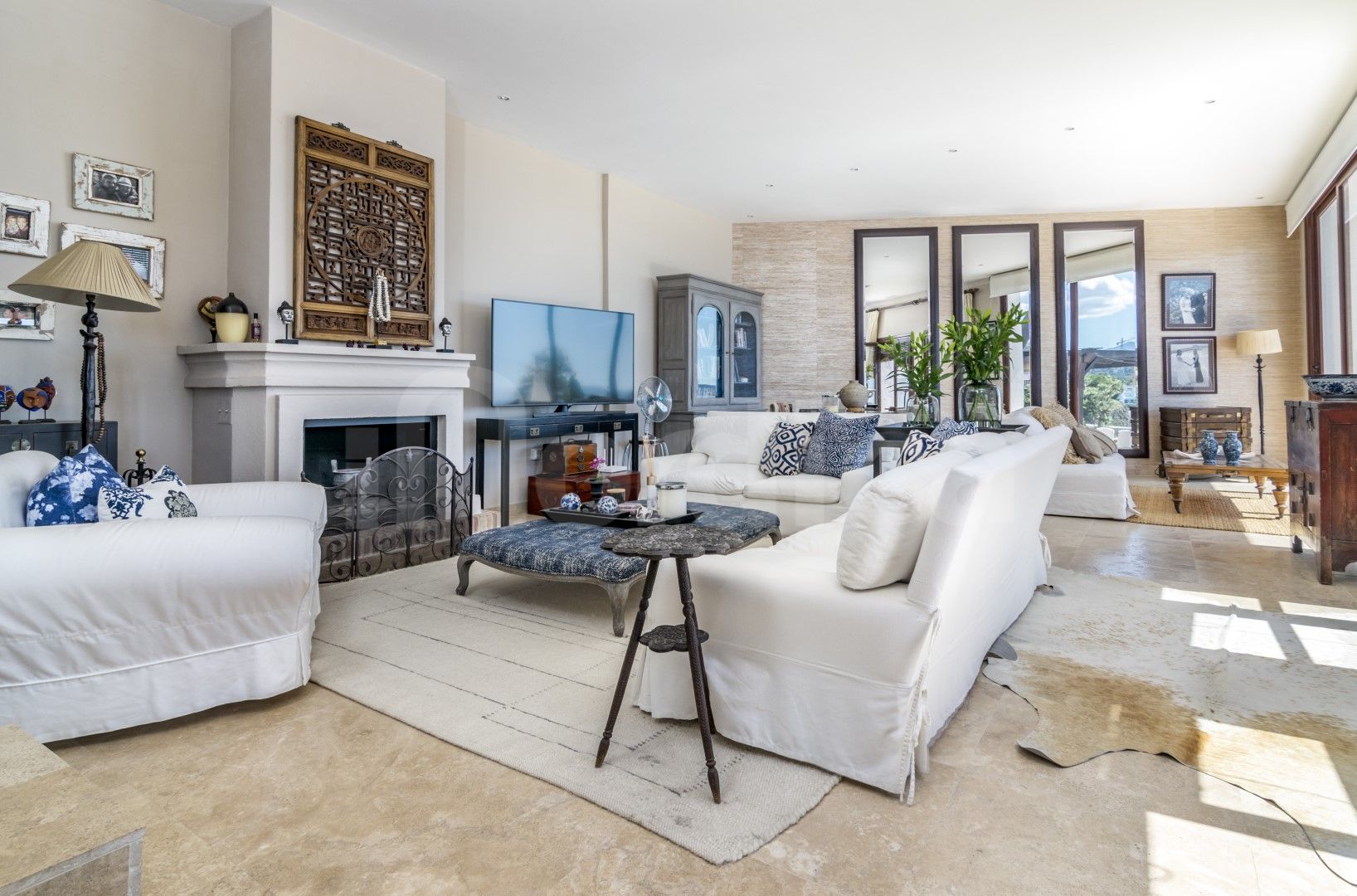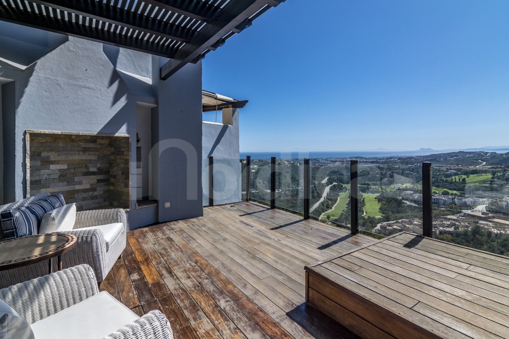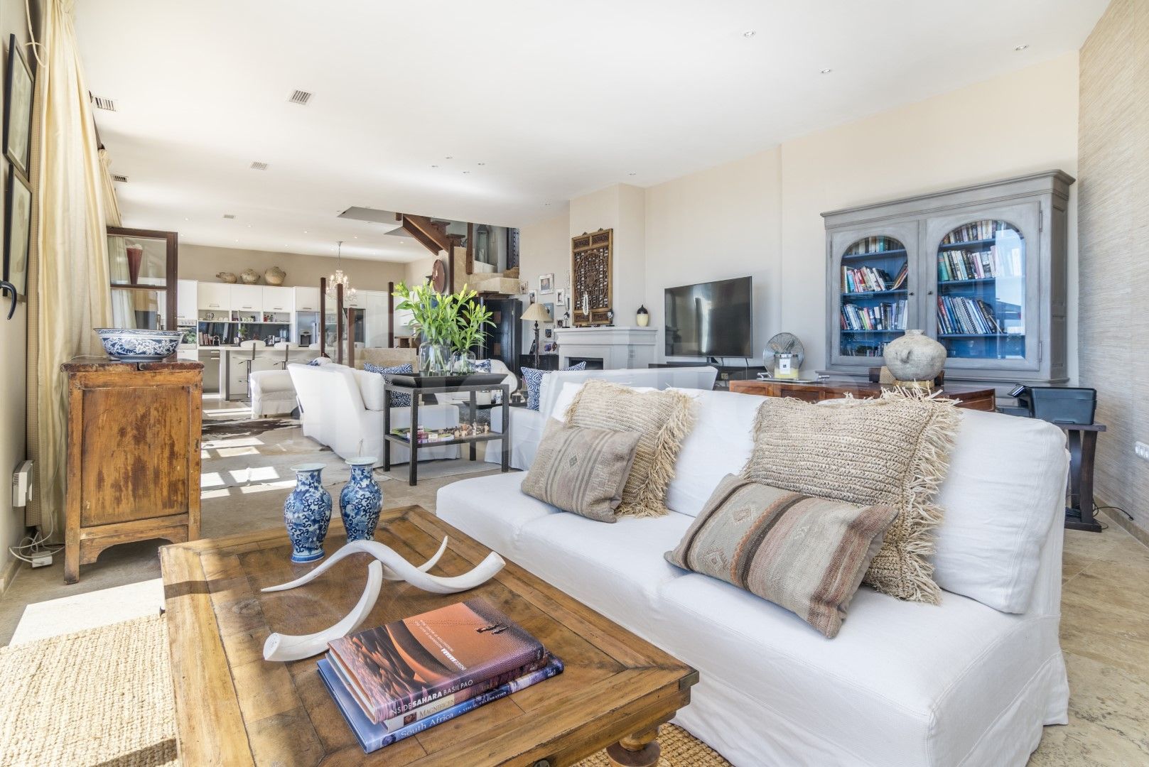 Siguiendo las escaleras hacia abajo, te lleva a un impresionante salón con cocina abierta renovada. Lo que hace única a esta propiedad es que desde todos los rincones se tienen vistas panorámicas a través de grandes ventanales. Desde el salón hay acceso directo a una gran terraza con mucho espacio para comer, relajarse y tomar el sol. Si usted está buscando una propiedad con vistas, simplemente no puede ser mejor que esto. También hay un peculiar aseo de invitados en esta zona.