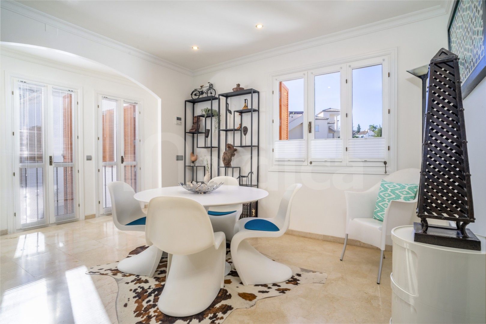 Al entrar al ático, le da la bienvenida un patio privado que crea un ambiente cálido y apacible antes de acceder al interior. El interior dispone de una zona de salón-comedor que fluye de manera natural hacia una soleada terraza. Desde aquí, podrá disfrutar de hermosas vistas a la emblemática montaña La Concha, los exuberantes jardines comunitarios, la zona de piscina y los fairways del campo de golf Aloha, creando un lugar ideal para relajarse o recibir invitados.