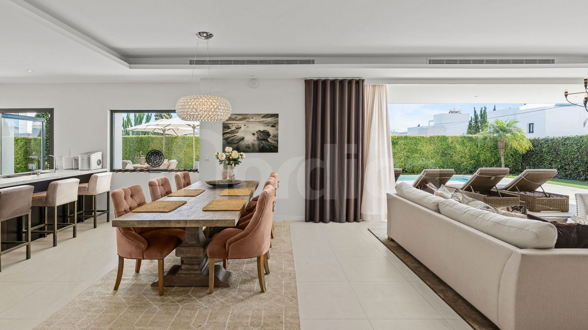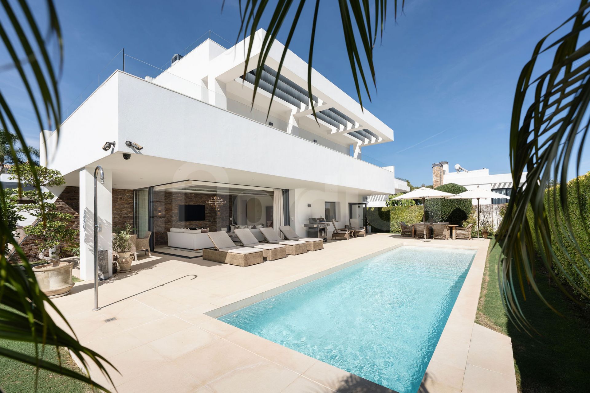 Esta hermosa villa de cinco dormitorios en venta está ubicada a solo un corto paseo de la playa, ofreciendo la combinación perfecta de lujo, comodidad y vida costera. Situada en la deseable zona de Linda Vista Baja, esta villa está idealmente posicionada cerca del corazón de San Pedro de Alcántara y a solo 10 minutos en coche de cinco renombrados campos de golf, lo que la convierte en una elección excepcional para familias y entusiastas del golf por igual. ¡Simplemente cumple con todos los requisitos: vida moderna, ubicación a poca distancia y también un fantástico potencial de alquiler!