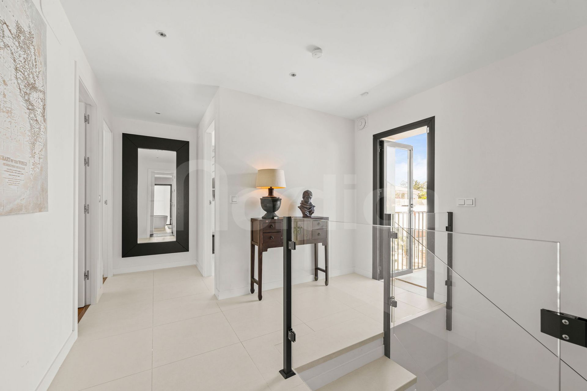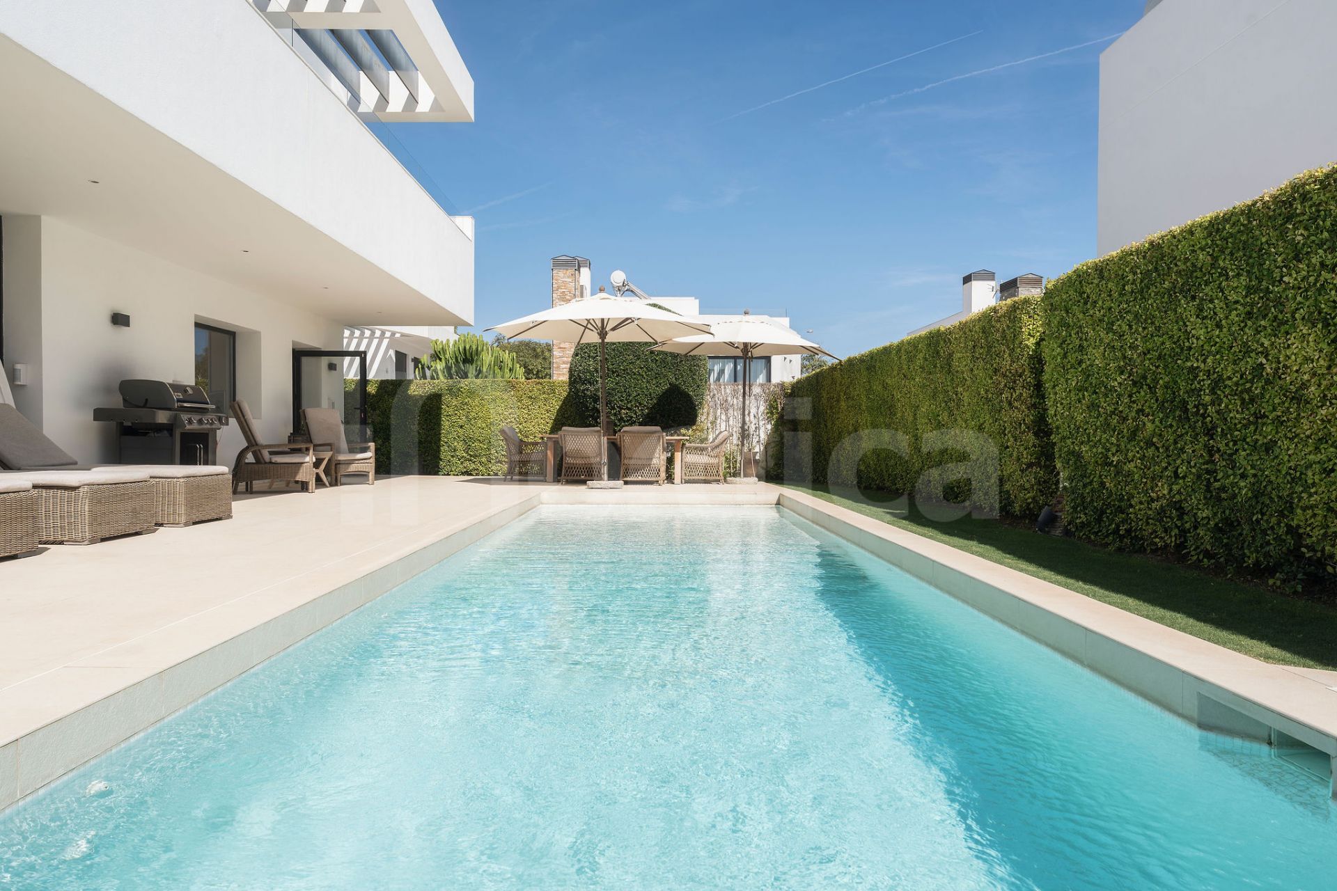 Diseñada con un estilo moderno y elegante, la villa cuenta con acabados y electrodomésticos de alta calidad, un hermoso jardín privado y una piscina climatizada. Los interiores espaciosos y llenos de luz crean un ambiente acogedor, con una cocina de concepto abierto que fluye perfectamente hacia las áreas de estar y comedor. Estos espacios se abren a la terraza, ofreciendo una vida interior-exterior sin esfuerzo mientras se contempla el exuberante jardín y la piscina.