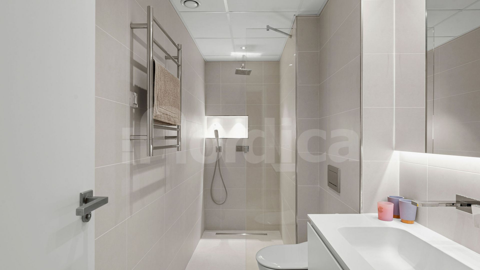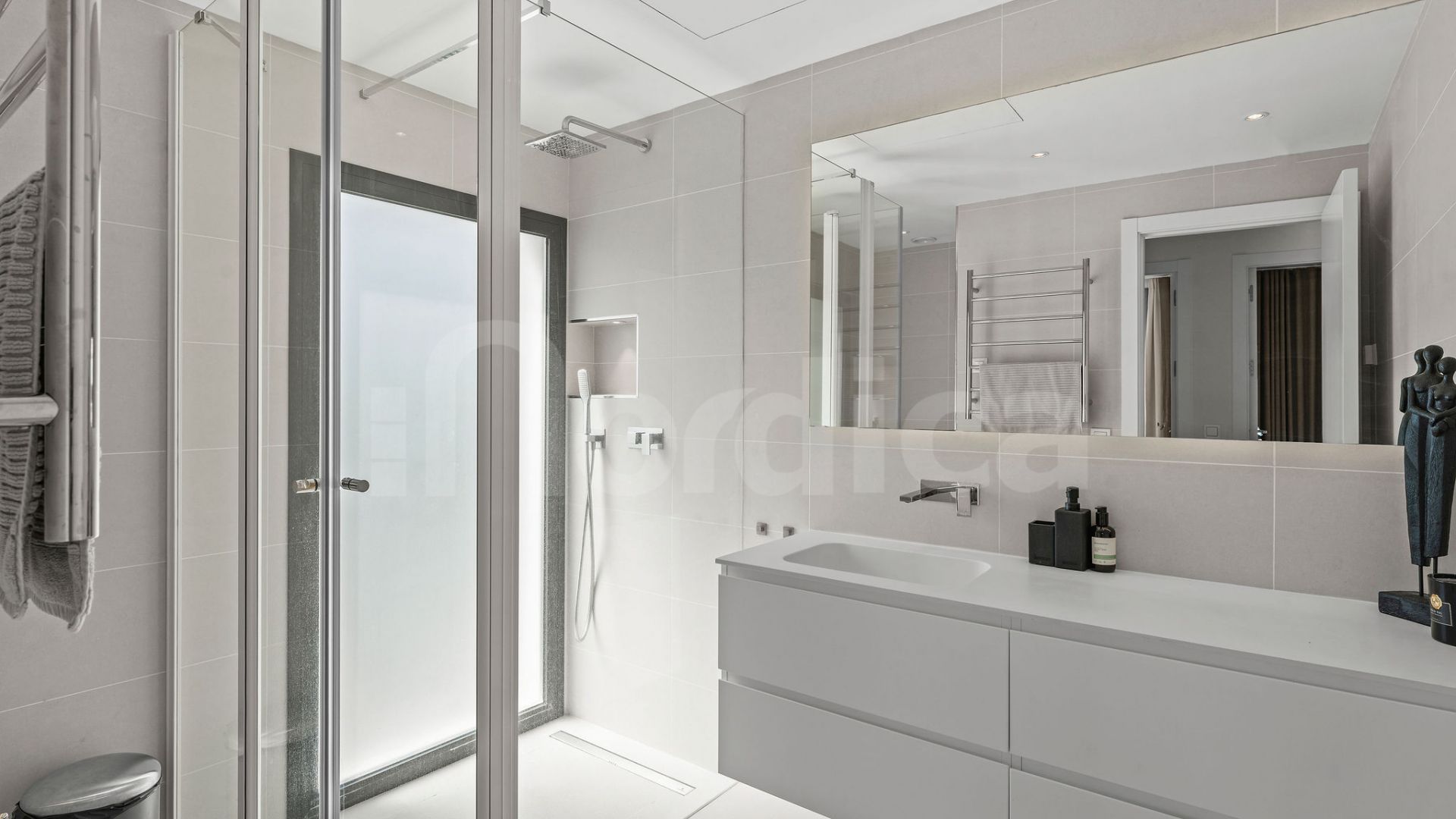 Los cinco dormitorios de la villa están complementados por baños modernos y elegantes. Cada dormitorio tiene su propia unidad de aire acondicionado, y la suite principal cuenta con un elegante suelo de madera y un baño en suite con una lujosa bañera. Tres dormitorios están ubicados en la planta superior, mientras que el nivel inferior ofrece dos dormitorios adicionales y una práctica sala de lavandería.