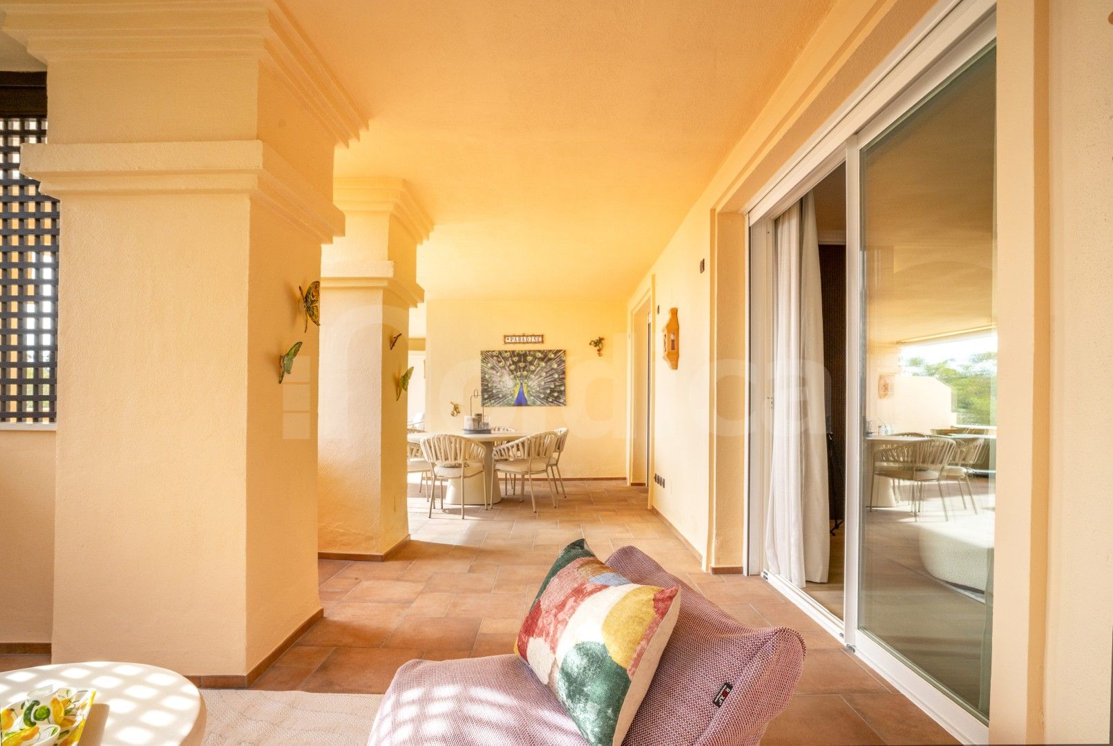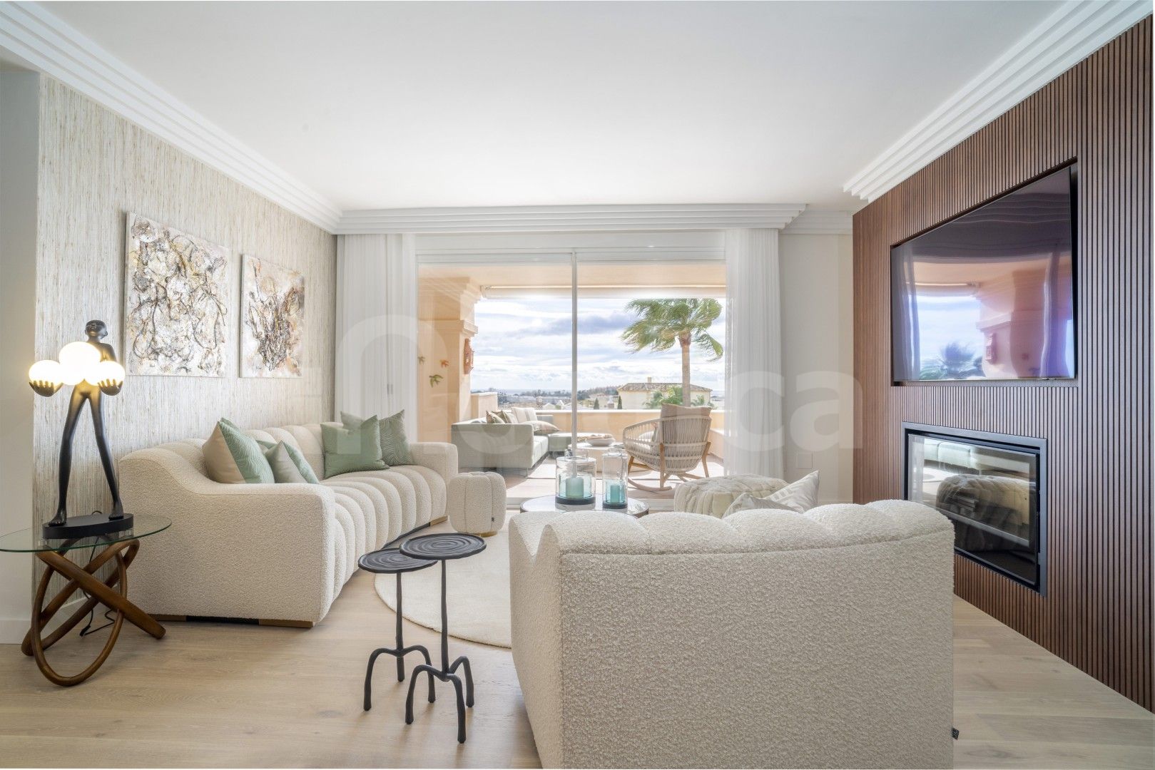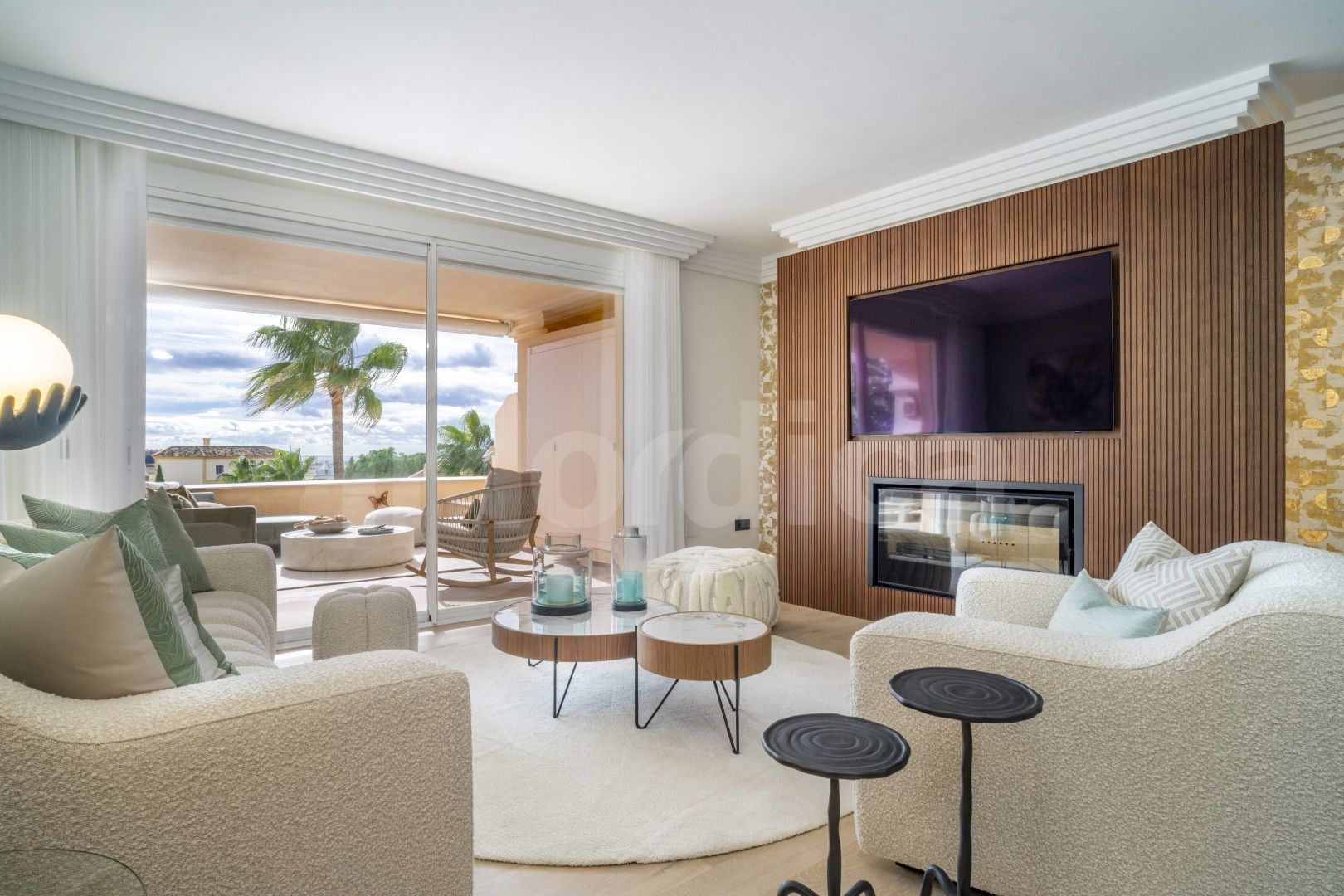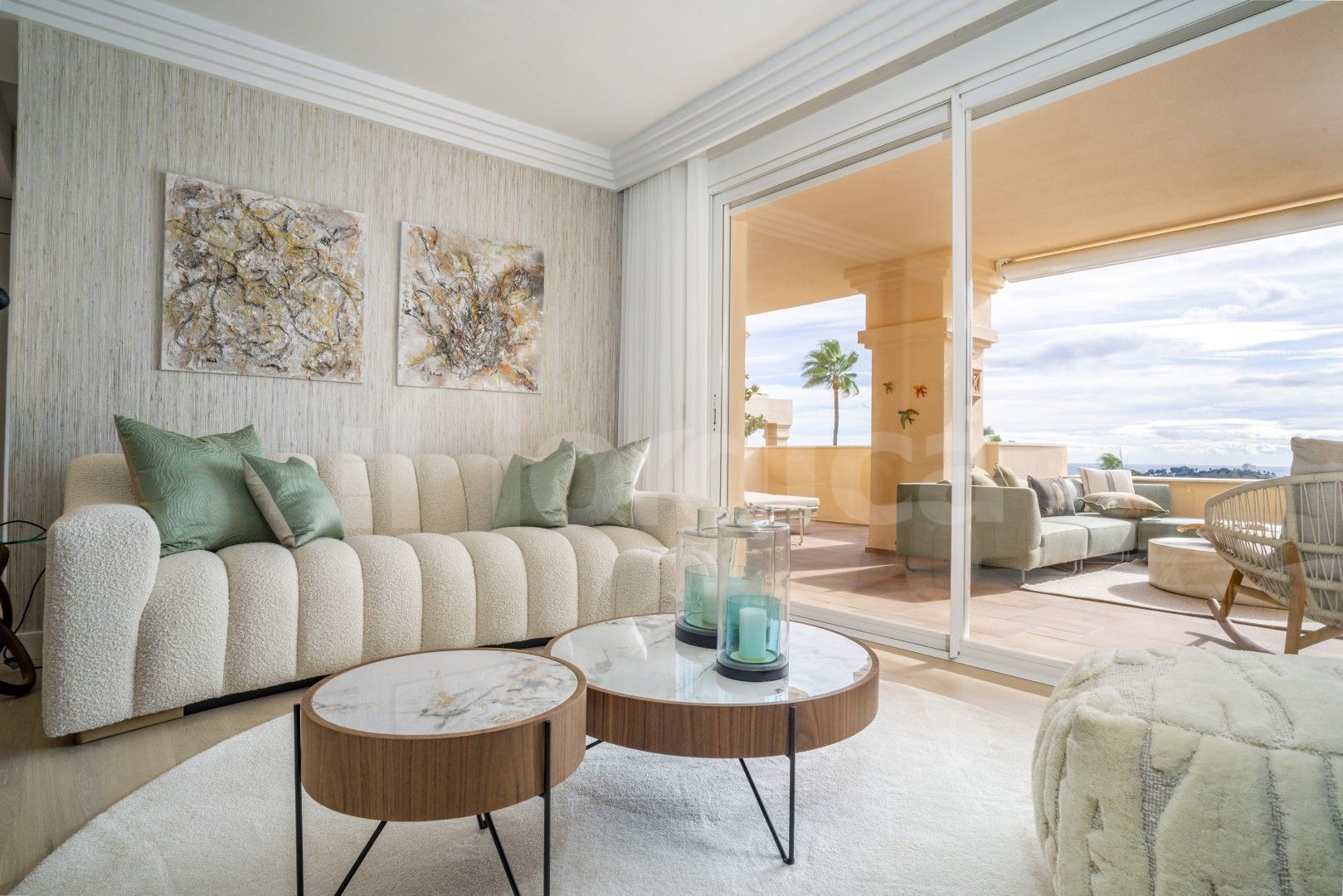 Découvrez un appartement spacieux de trois chambres, entièrement rénové et à vendre à Nueva Andalucía, situé dans la prestigieuse communauté résidentielle d’Albatross Hill. Nichée au cœur de la Vallée du Golf, cette résidence exclusive est réputée pour la qualité de ses logements, ses vues panoramiques et sa proximité inégalée avec des parcours de golf renommés tels que Las Brisas, Los Naranjos et Aloha Golf Club. Idéal comme résidence principale ou comme luxueuse maison de vacances, cet appartement est vendu entièrement meublé, offrant une solution clé en main pour une occupation immédiate.