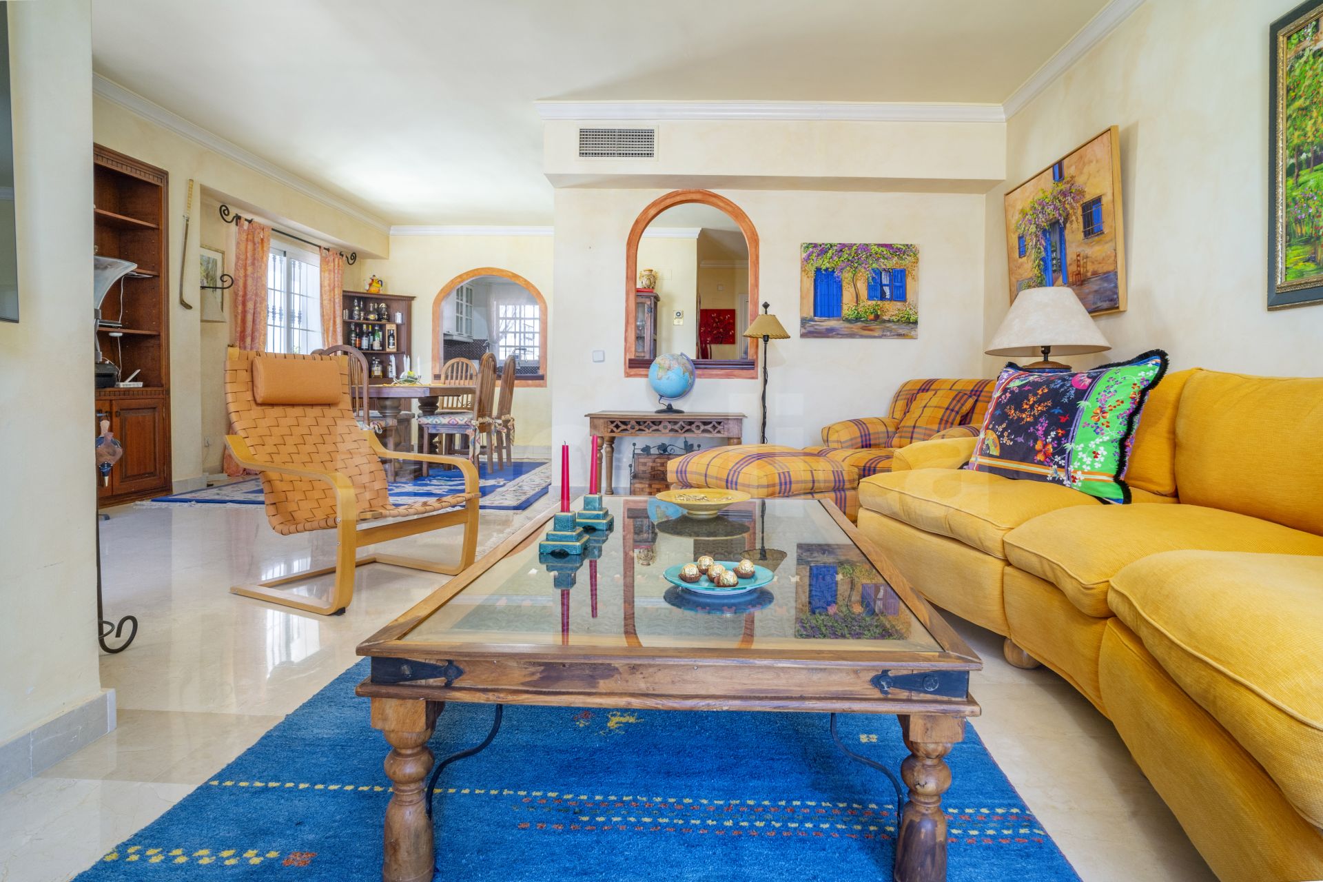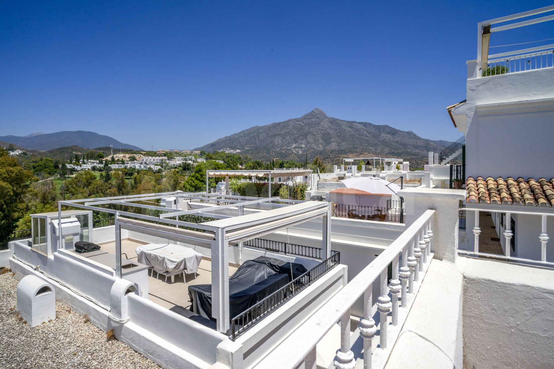 Cette magnifique maison de ville, idéalement située au cœur du très prisé Aloha Pueblo, offre le parfait équilibre entre le charme traditionnel andalou et le confort moderne. Répartie sur deux niveaux avec, en prime, une spacieuse terrasse sur le toit, cette unité d’angle garantit une intimité maximale et des vues imprenables sur les couchers de soleil.