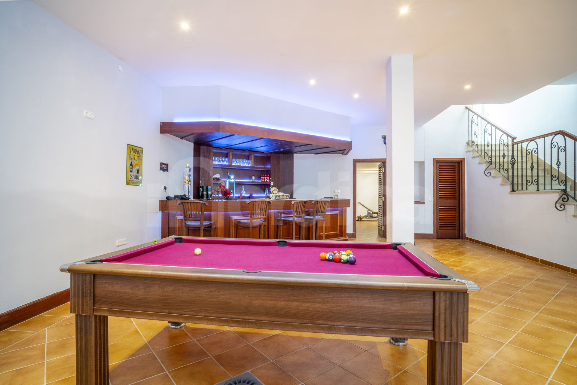 - Toilettes invités, grande pièce polyvalente (idéale comme bureau ou chambre supplémentaire), et une vaste salle de divertissement avec bar et table de billard.