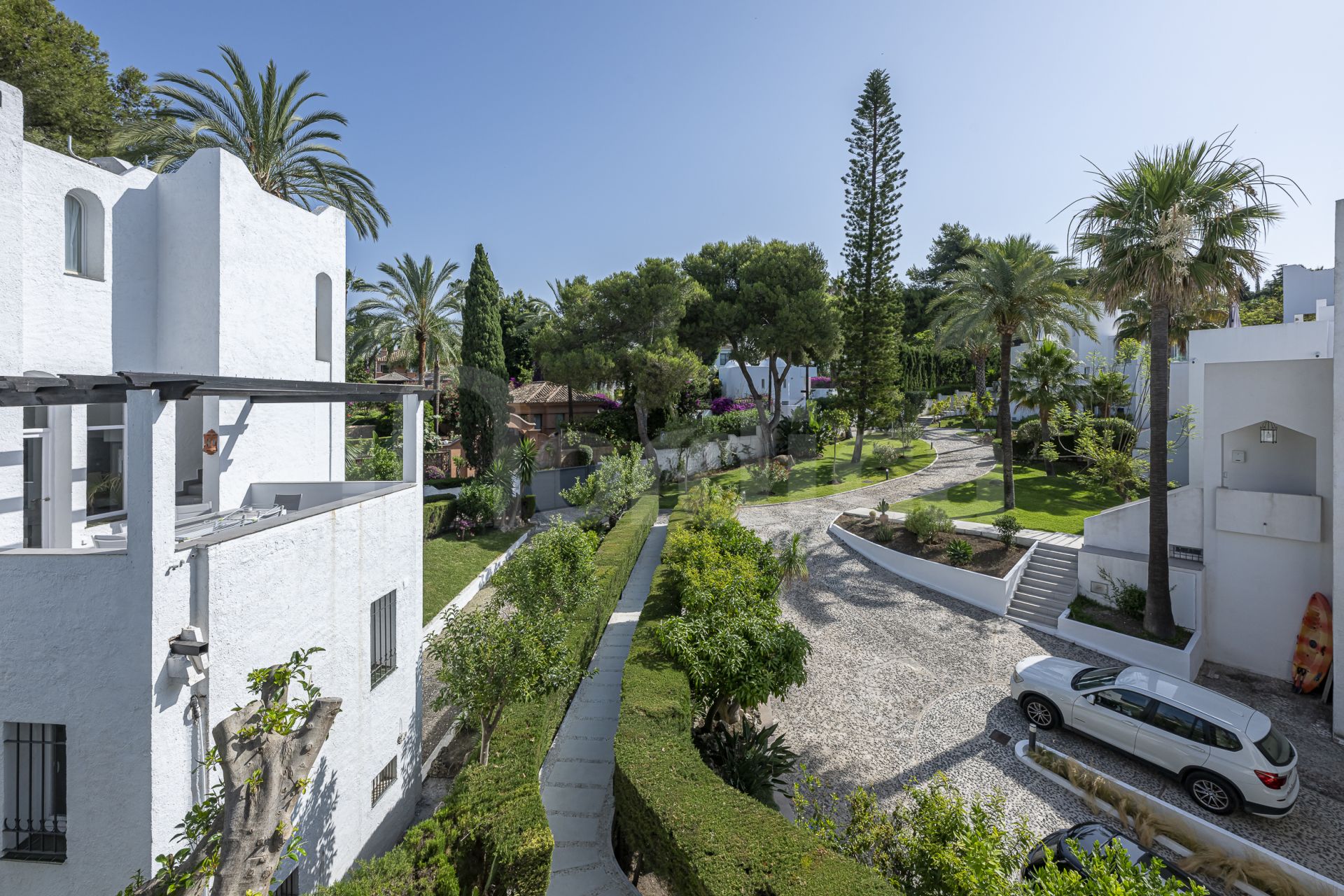 Conçue aussi bien pour la détente que pour recevoir, la propriété offre des espaces extérieurs élégants pour les repas et les barbecues, ainsi que des zones de détente. Des palmiers et un aménagement paysager verdoyant entourent le jardin commun parfaitement entretenu, qui dispose de deux piscines.