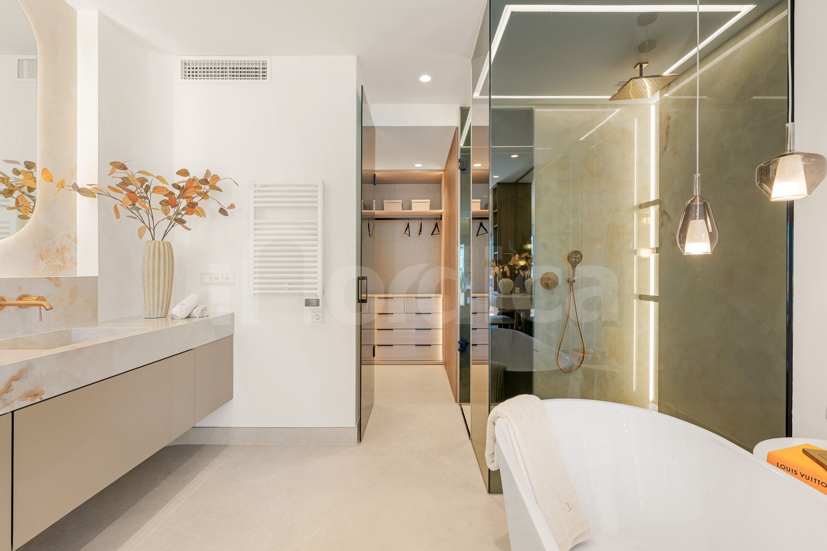 Ce penthouse entièrement rénové de 3 chambres se situe dans la très prisée communauté en bord de mer de Bahía del Velerín, sur la Nouvelle Mille d’Or entre Marbella et Estepona. Cet appartement exceptionnel offre l’essence même du mode de vie méditerranéen, avec espace, élégance et vues panoramiques.