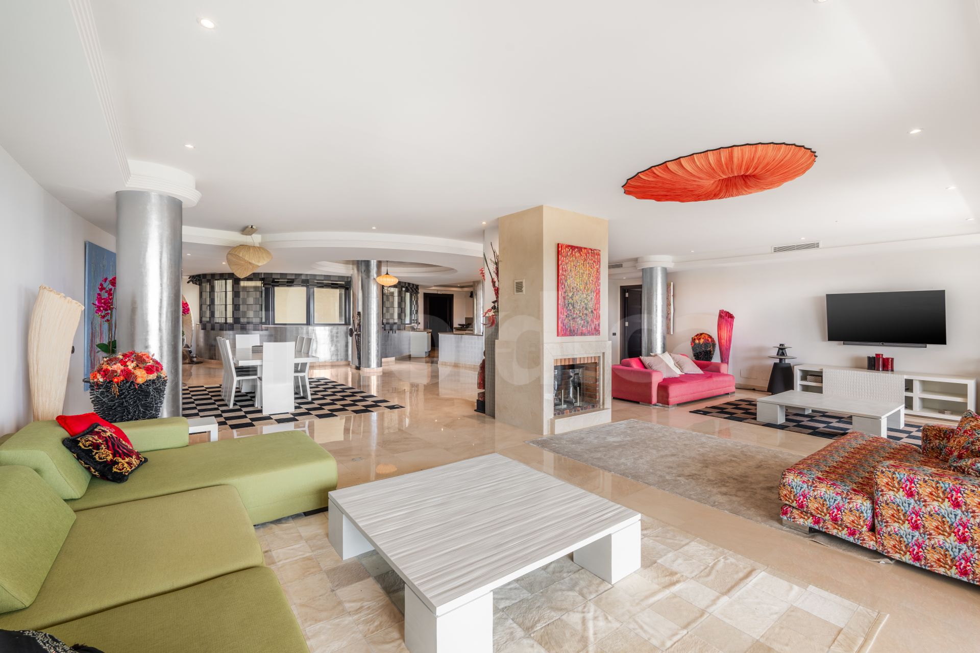 Situé au sein de l’un des ensembles résidentiels les plus prestigieux en bord de mer de Marbella, ce superbe appartement au premier étage offre 394 m² d’espaces intérieurs élégamment conçus, complétés par 67 m² de terrasses orientées sud-ouest bénéficiant d’une abondante lumière naturelle et de vues paisibles sur le coucher du soleil. L’emplacement exceptionnel permet un accès direct à la mer tout en étant à quelques pas de Puerto Banús, de restaurants renommés, de boutiques de créateurs et de toutes les commodités du quotidien.