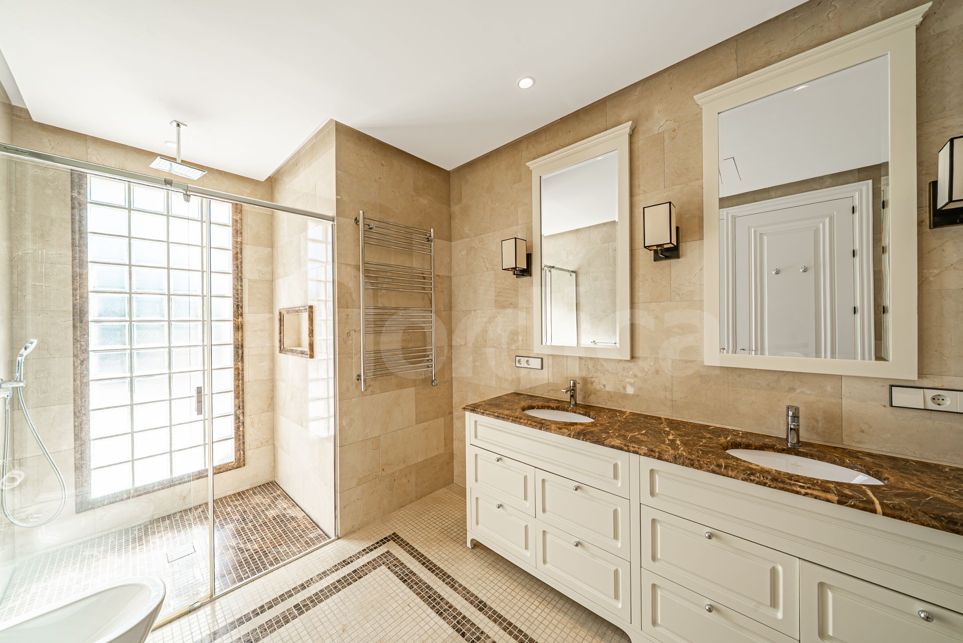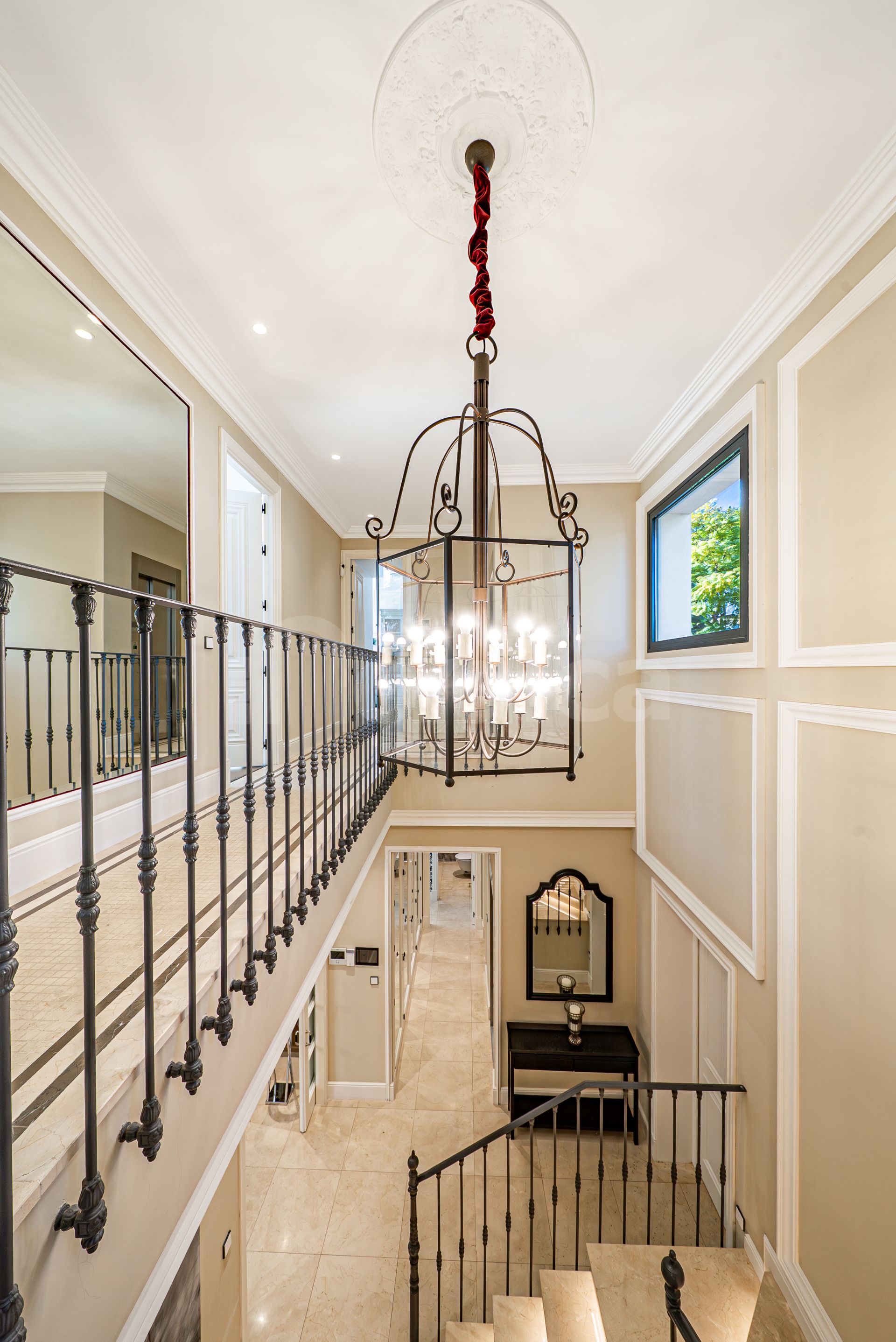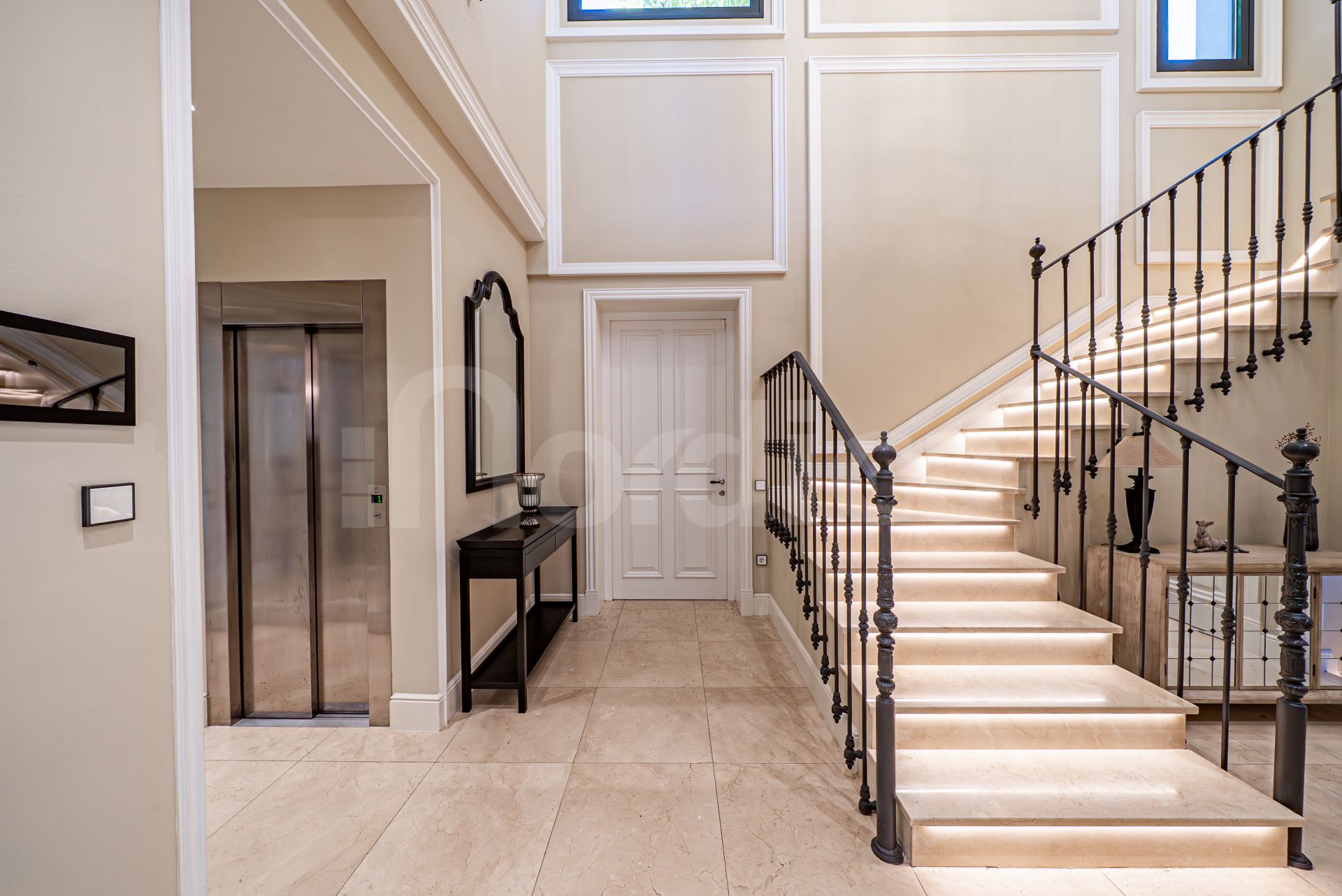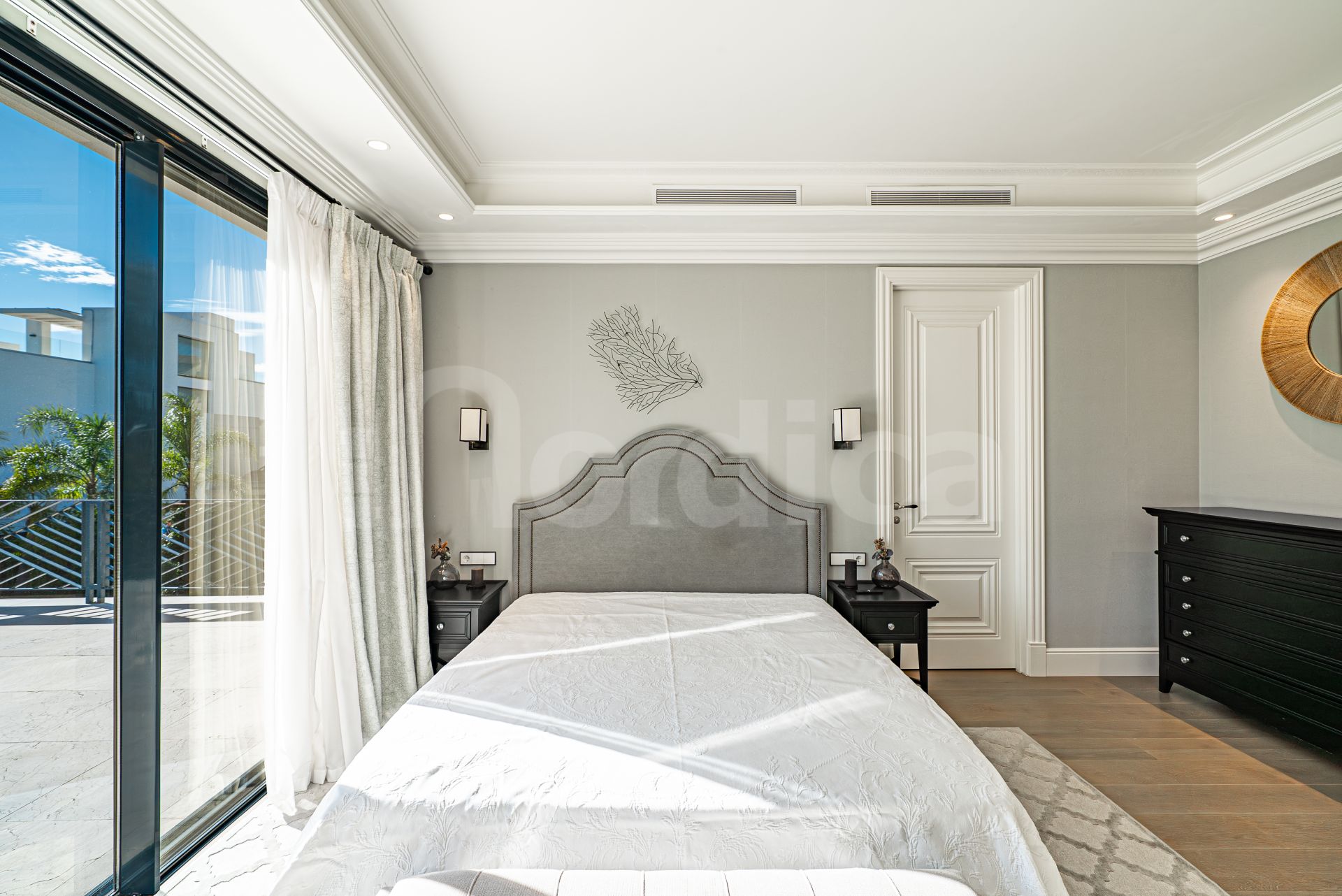 Le rez-de-chaussée est dédié à la vie sociale, avec une cuisine ultramoderne équipée d’appareils haut de gamme, un salon spacieux et une grande terrasse couverte menant à la piscine et au vaste jardin. Une chambre d’amis avec sa propre terrasse offre un confort supplémentaire. À l’étage, vous trouverez un espace familial plus privé, avec trois chambres. La suite parentale dispose d’une terrasse privée offrant les vues panoramiques les plus époustouflantes.