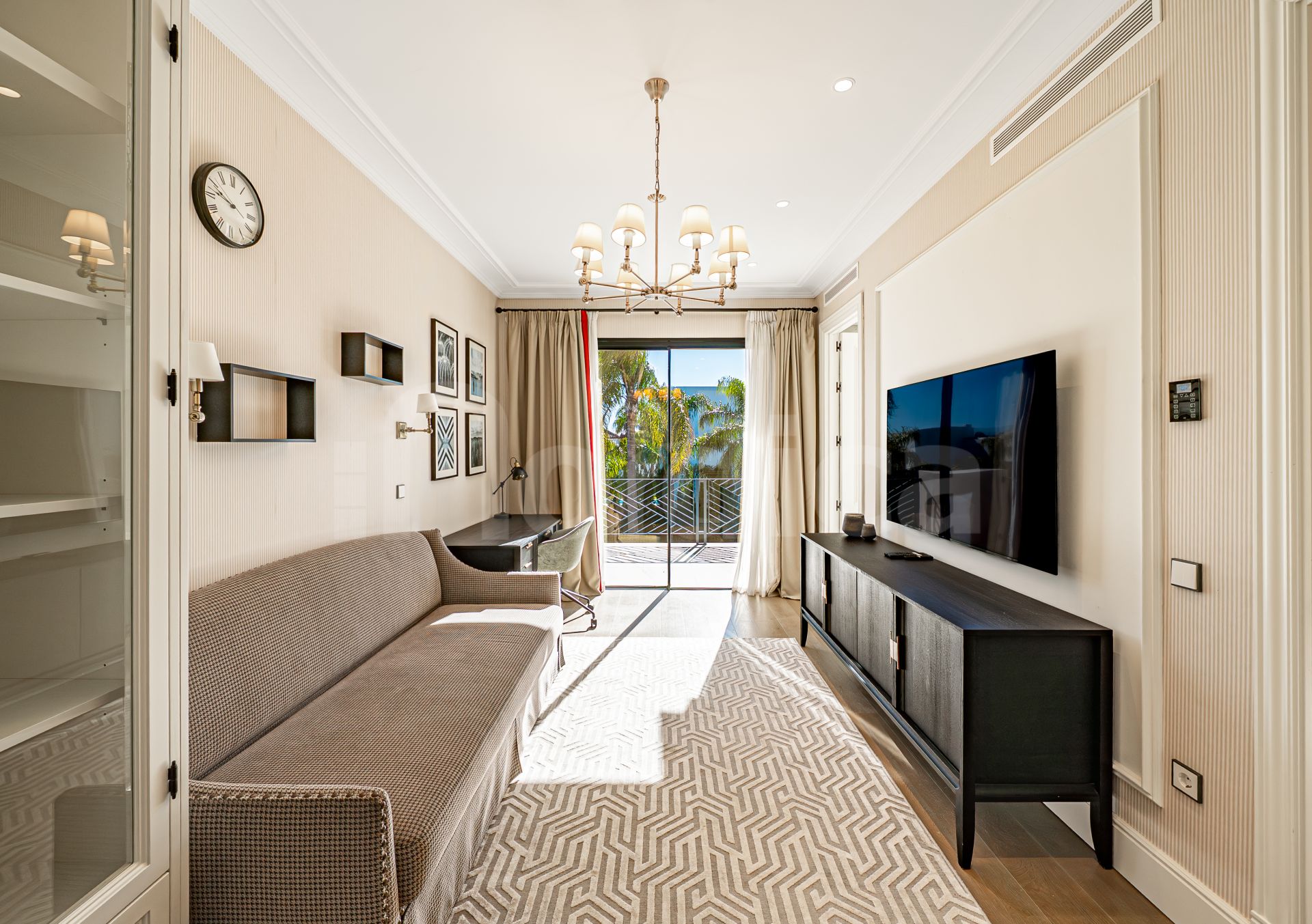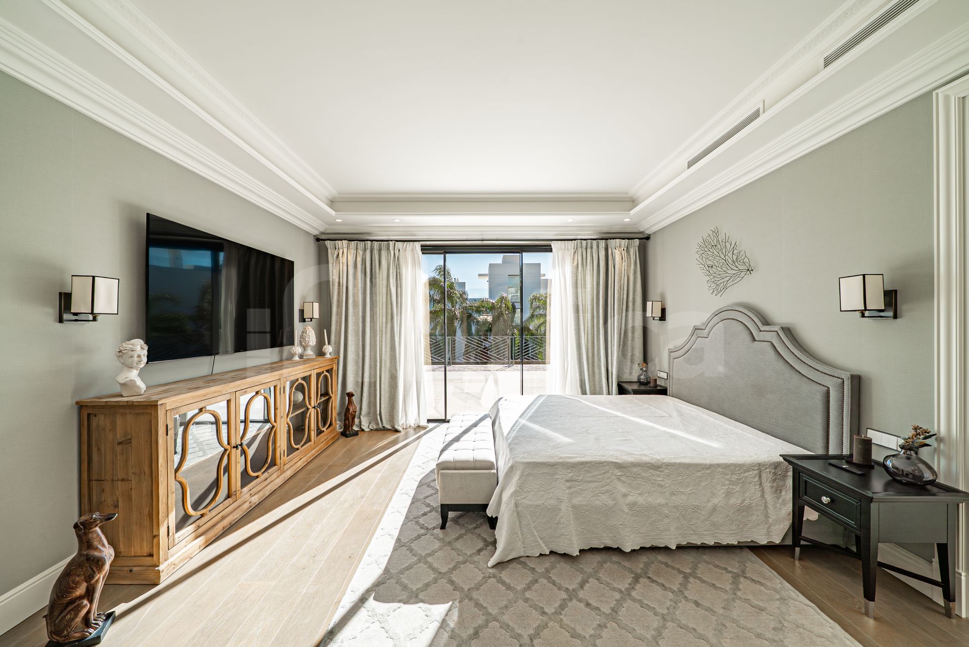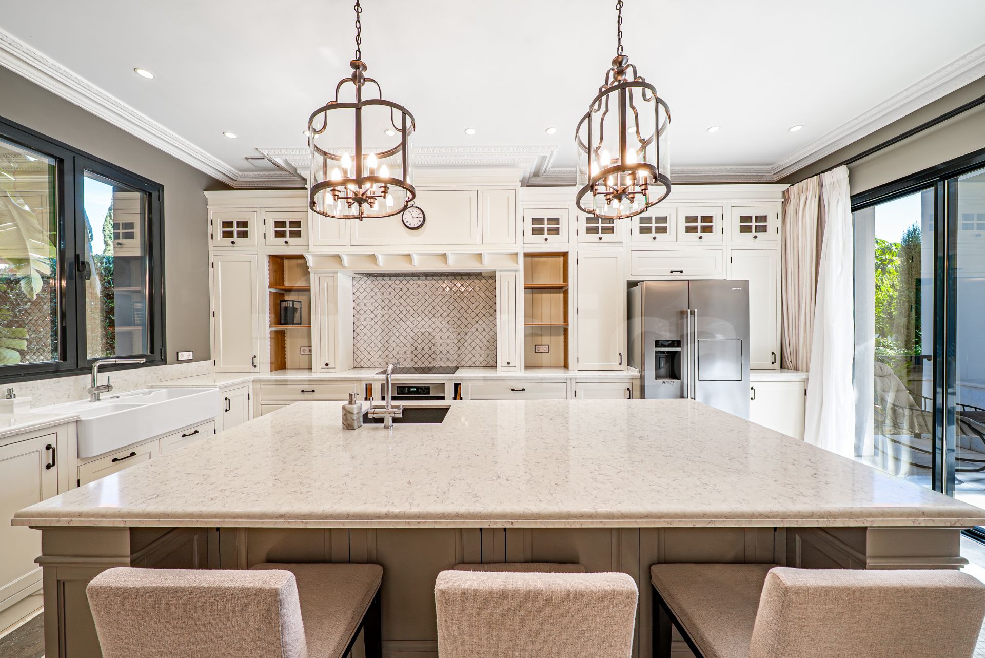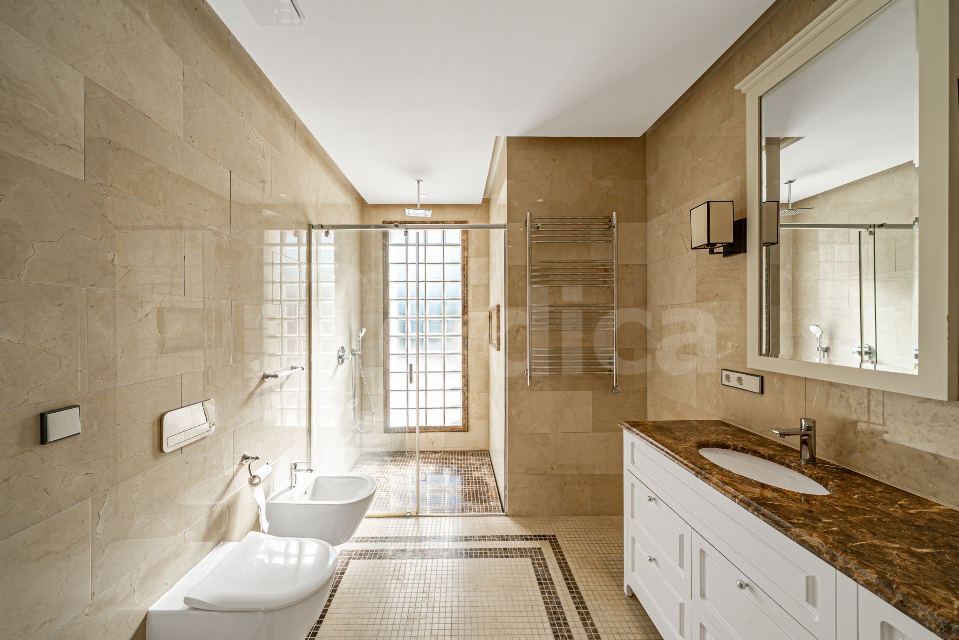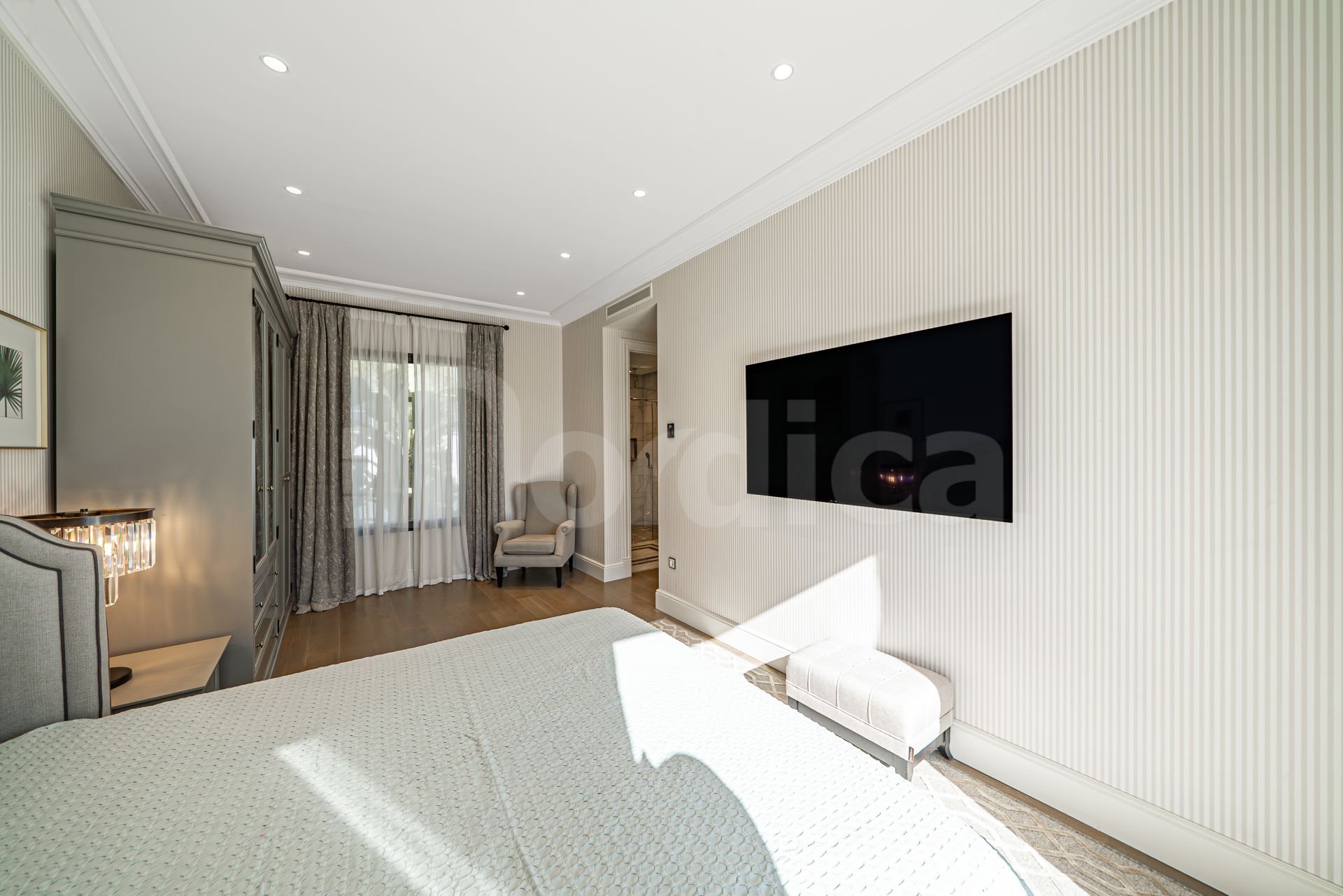 Le rez-de-chaussée est dédié à la vie sociale, avec une cuisine ultramoderne équipée d’appareils haut de gamme, un salon spacieux et une grande terrasse couverte menant à la piscine et au vaste jardin. Une chambre d’amis avec sa propre terrasse offre un confort supplémentaire. À l’étage, vous trouverez un espace familial plus privé, avec trois chambres. La suite parentale dispose d’une terrasse privée offrant les vues panoramiques les plus époustouflantes.