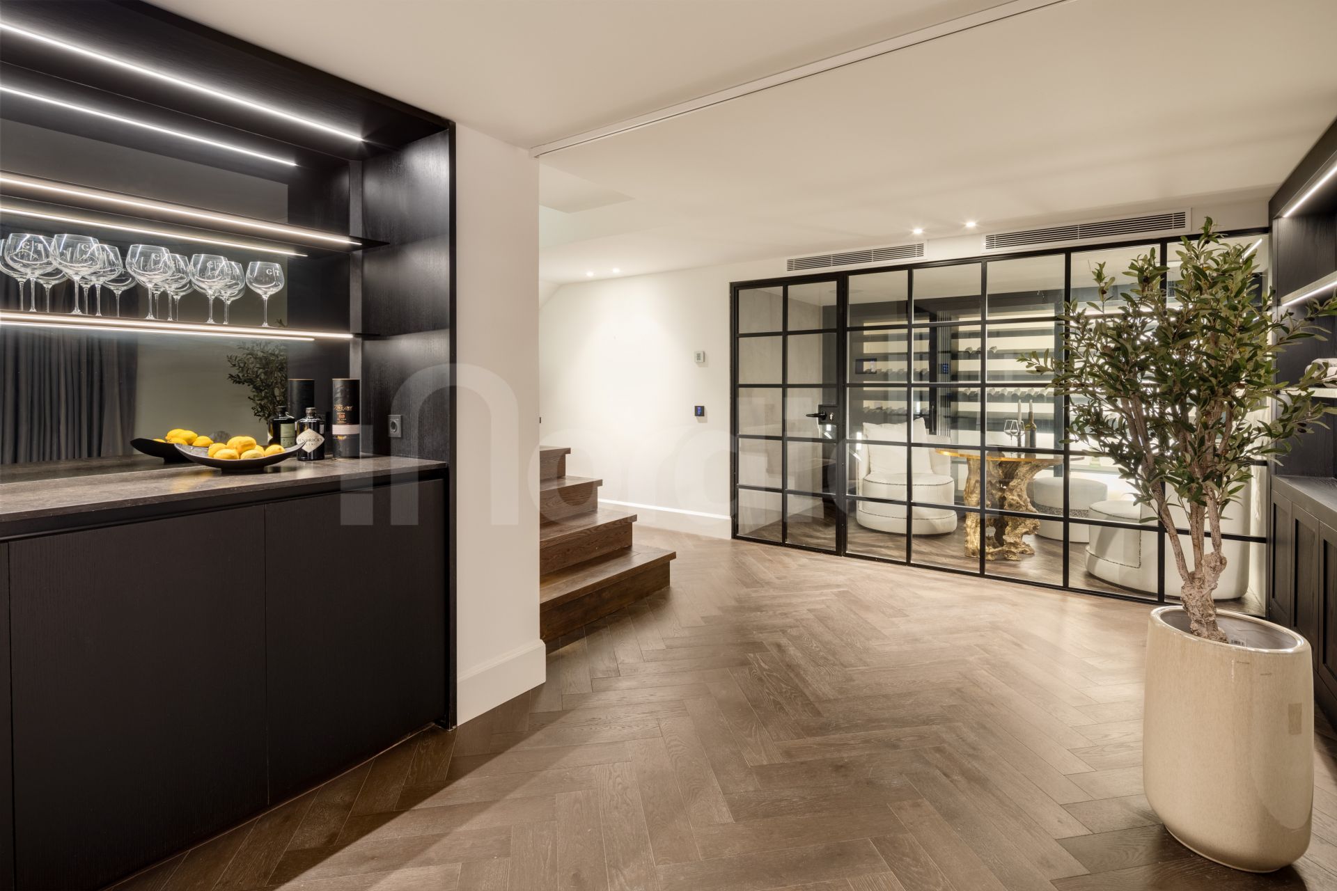 Le niveau inférieur de la propriété est consacré au bien-être, aux loisirs et au divertissement. Il comprend une piscine intérieure, une salle de sport entièrement équipée et un sauna à vapeur. Une cave à vin à température contrôlée, un salon de divertissement insonorisé avec un bar élégant et un grand espace TV complètent cet étage. Deux chambres supplémentaires partagent une salle de bains.
