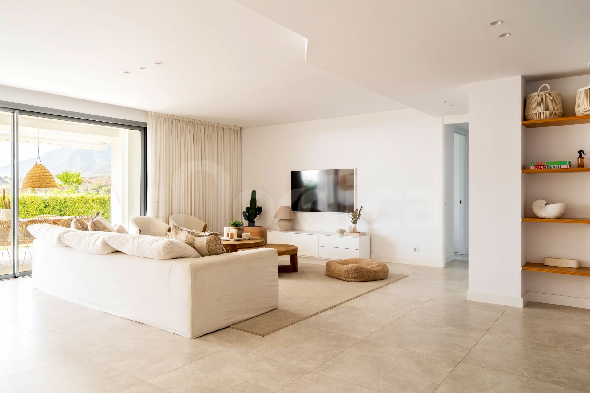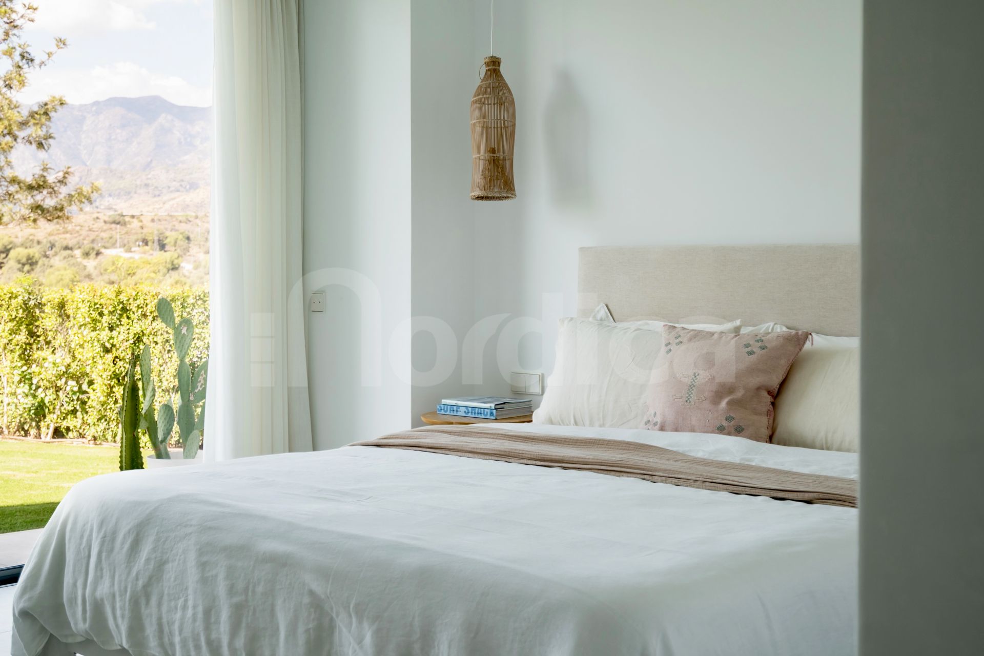 Cette propriété de quatre chambres se situe au sein de la prestigieuse communauté sécurisée de Soul Marbella à Santa Clara, un sanctuaire de plain-pied qui allie design moderne et esthétique raffinée inspirée d’Ibiza. Baignée de lumière du midi jusqu’au coucher du soleil, l’orientation sud-ouest de la maison et son jardin privé surélevé offrent un havre de paix avec vue sur la montagne et vue partielle sur la mer.